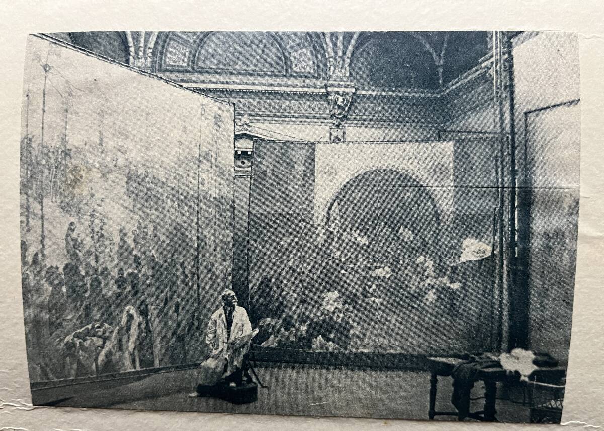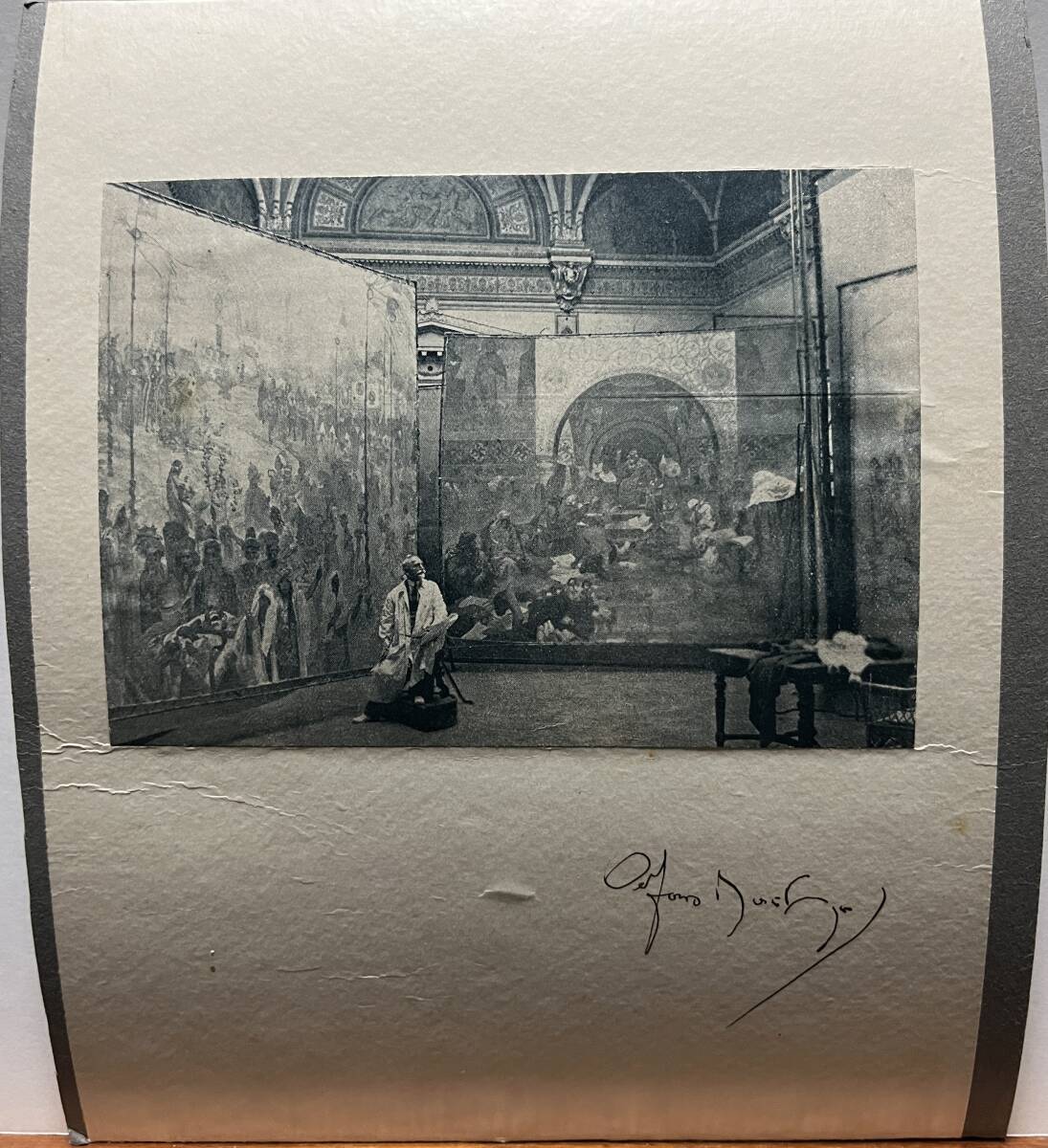| アルフォンス・ミュシャの写真の台紙にサインされたものです。 ミュシャのスラブ叙事詩作成中の貴重な写真です。 台紙が少し曲がっています。 台紙サイズ:18×22㎝ | |||