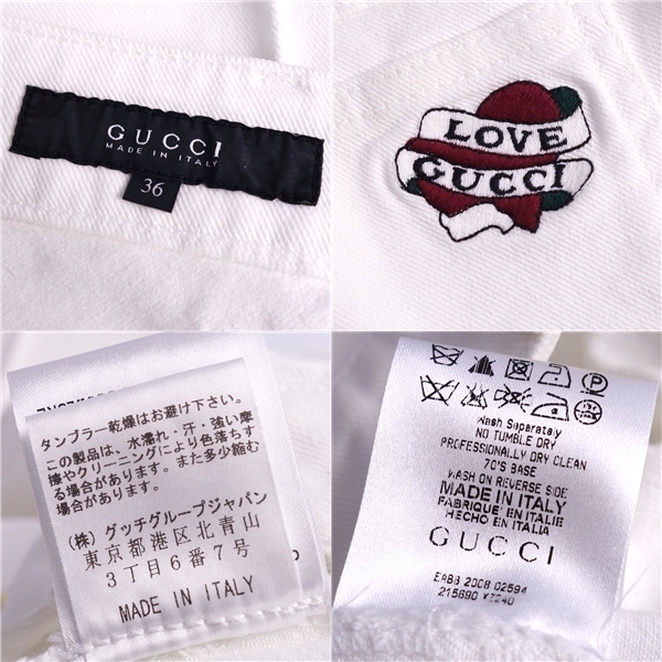 | 未使用 グッチ GUCCI パンツ デニムパンツ コットン ハート ロゴ刺繍 ボトムス レディース イタリア製 36 ホワイト |
