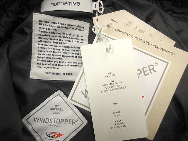 未使用品 ノンネイティブ nonnative 24AW HIKER EASY PT Pタフタ GORE-TEX NN-P4526 イージーパンツ ゴアテックス 1 ブラック