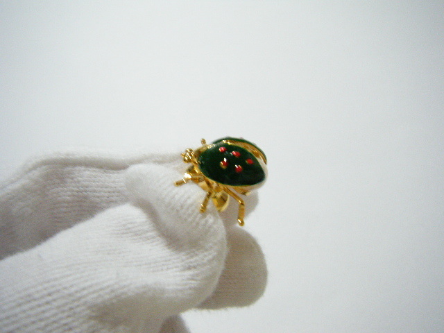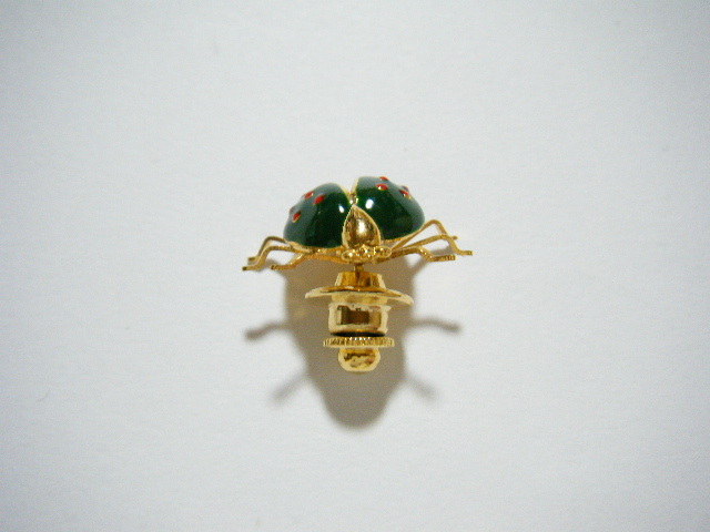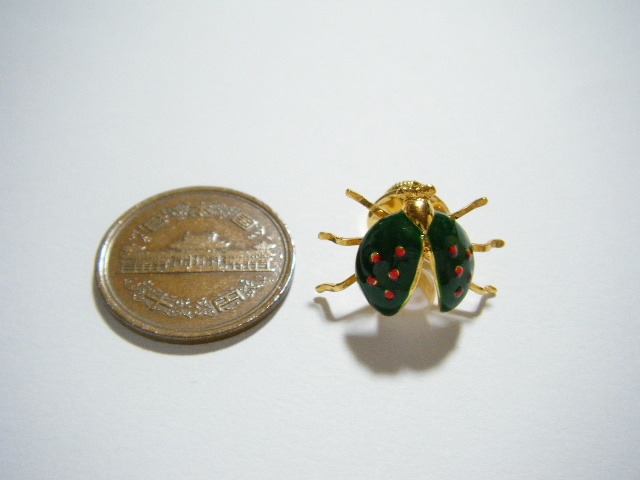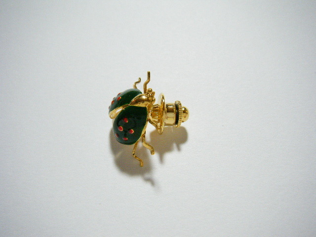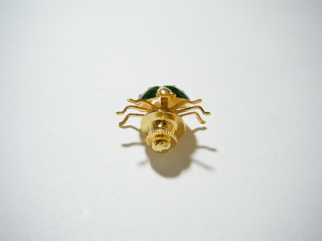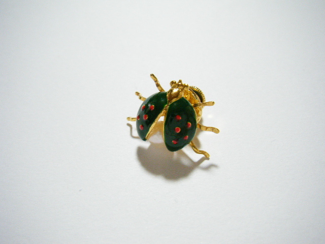 ★ピンブローチ てんとう虫 テントウムシ パール 緑系 虫 ゴールドカラー【AS19】