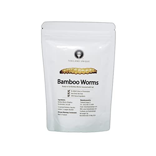 「食用 安全 昆虫食 幼虫 (バンブーワーム)」▼4582565914313▼(商品説明)PatternName:バンブーワーム・パッケージ個数:1・原材料バンブーワーム、塩・特徴タンパク質と繊維が多く、脂肪が少ないため、タイで最も人気のある食用昆虫の 1 つになっています。・ 内容量10g(1袋に含まれる内容は、昆虫の大きさによって変動します。)・原産国タイ原材料・成分 バンブーワーム、塩