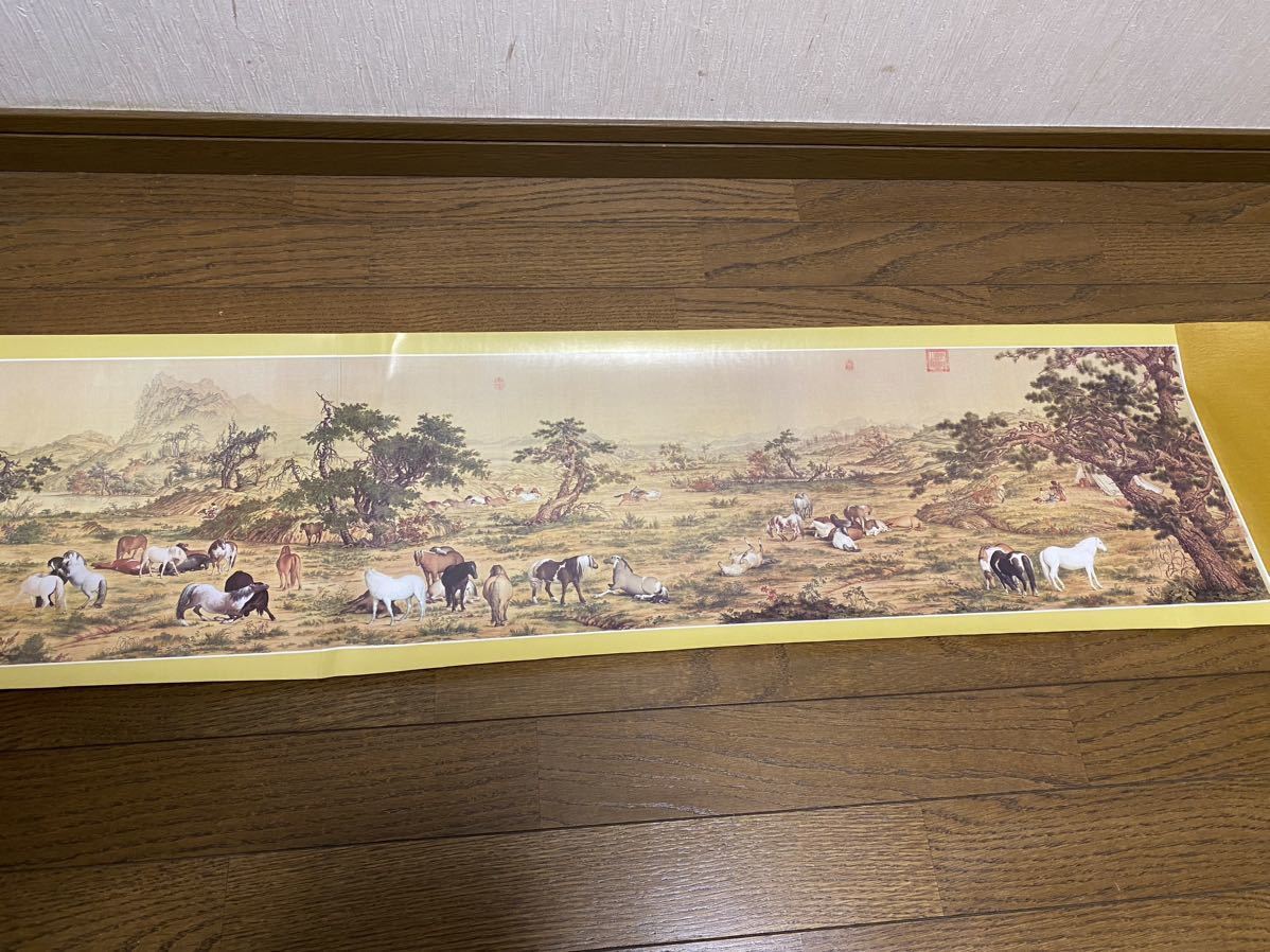 中国古美術 著名な 郎世寧 百駿圖 カスティリオーネ 古画 高清印刷複製巻物画 275×29" 管理番号711