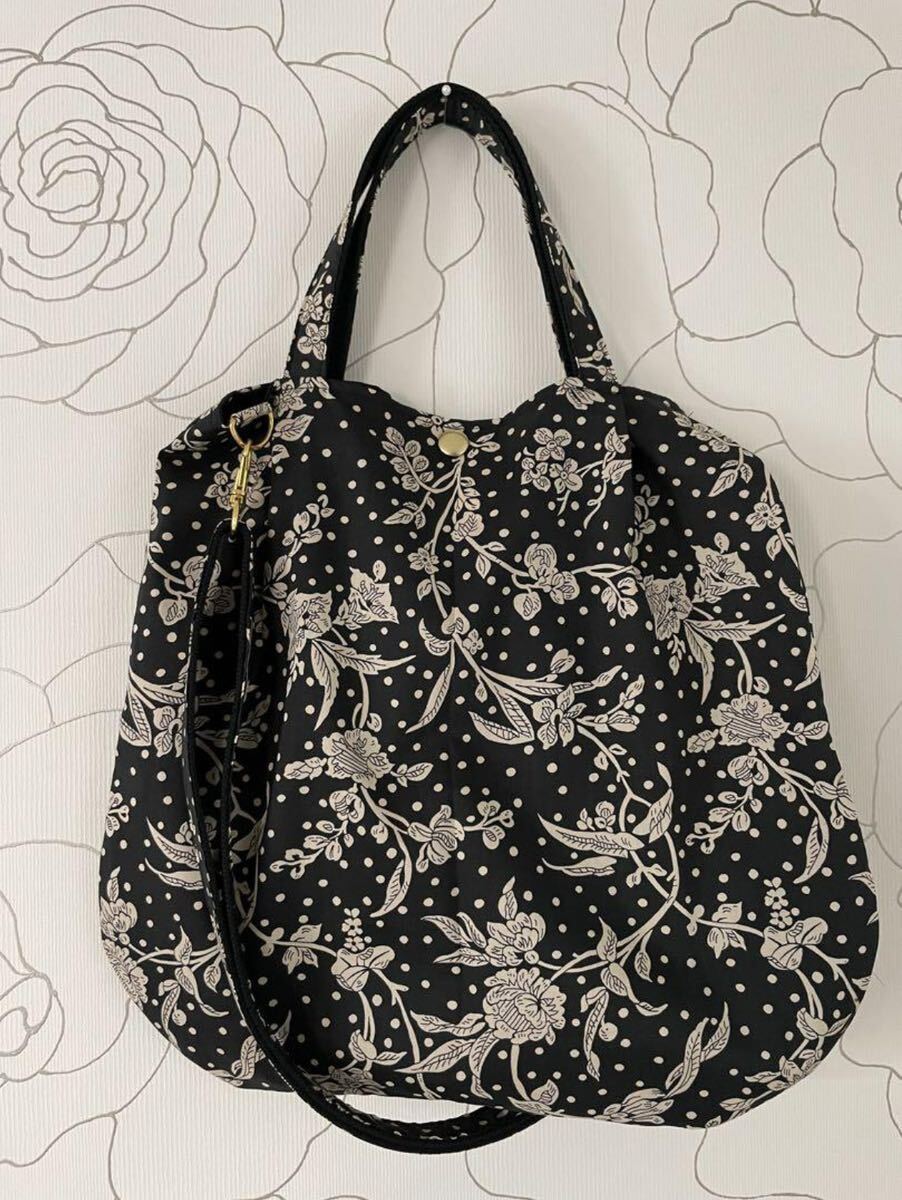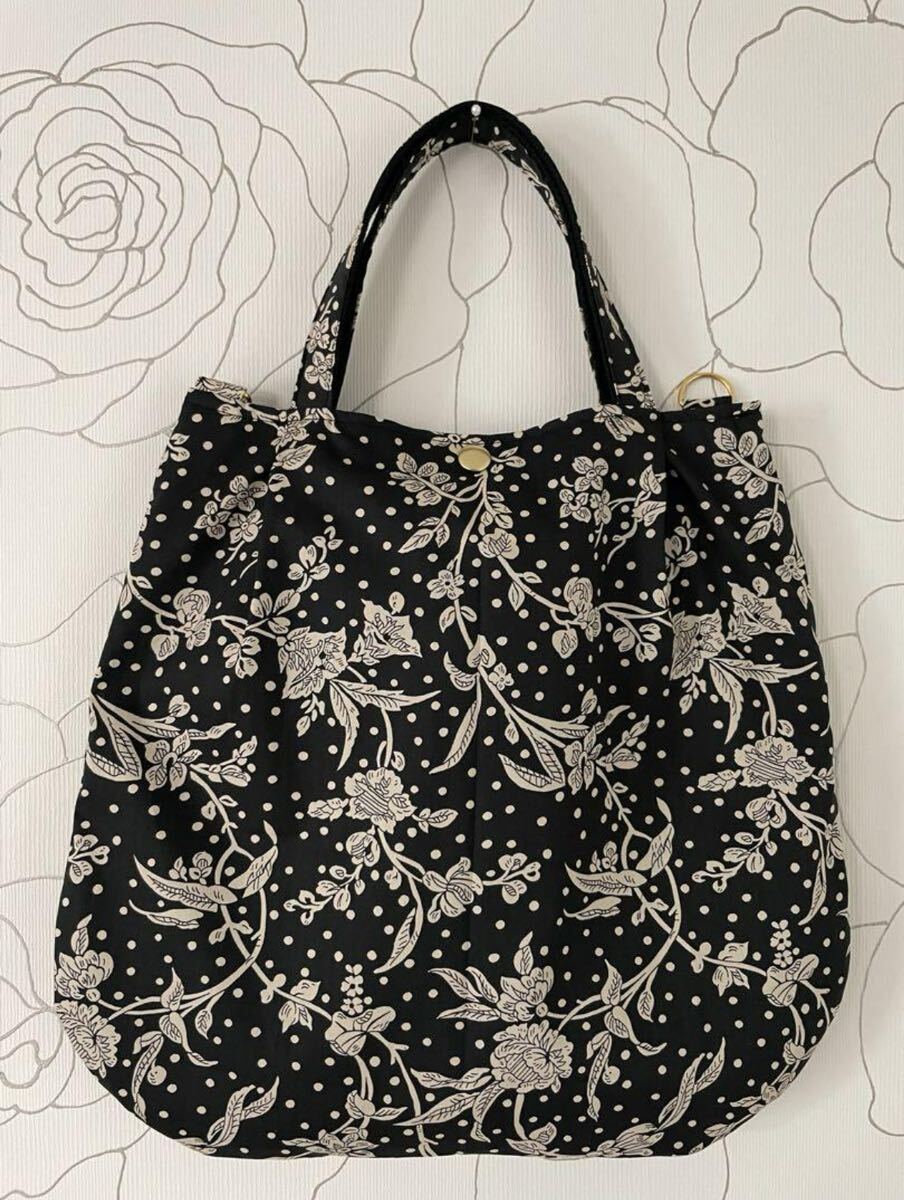 裏地は無地の黒生地です。内側にはポケット2つ付き♪
