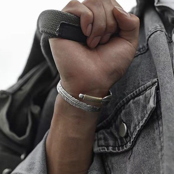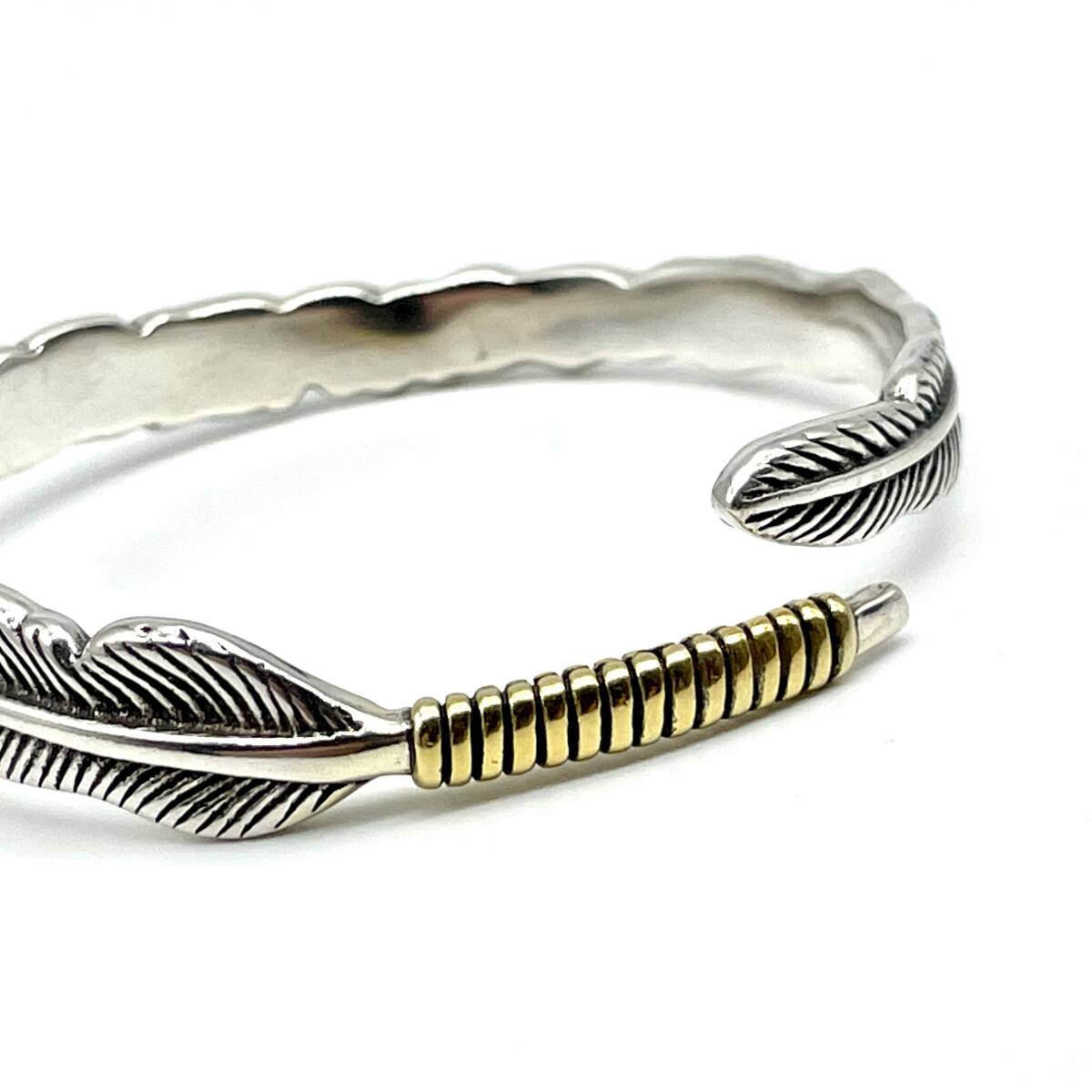 フェザー デザイン バングル ★ ブレスレット メンズ シルバー フリーサイズ 新品 人気 未使用 ネイティブ カジュアル 民族 【PN3-246】
