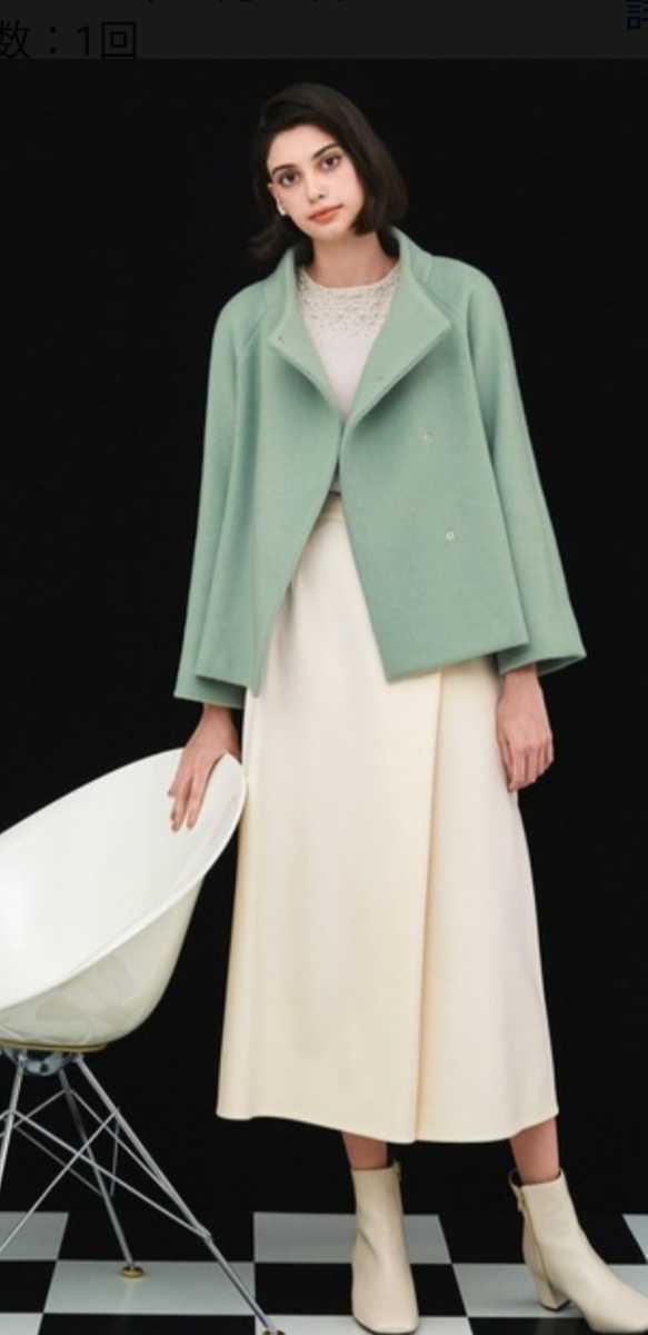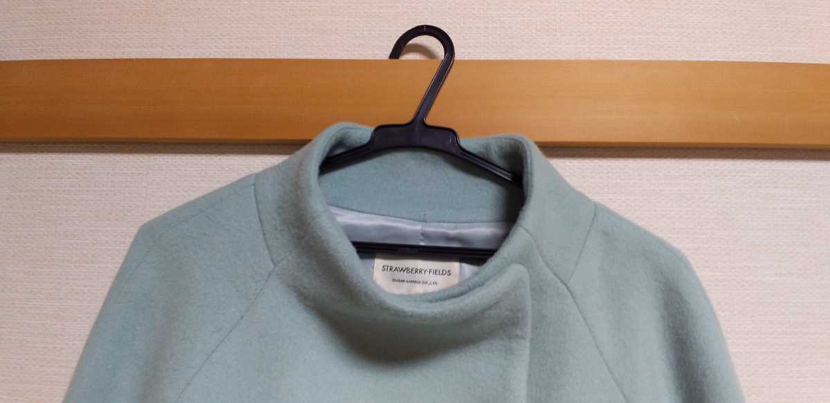 ストロベリーフィールズのライトグリーン色のショートコートです。後ろが少し長くなって綺麗な形です。定価35200円で購入し1度着用しただけですので、まだ綺麗な状態です。着て頂ける方にお譲りしたいと思い出品しました。