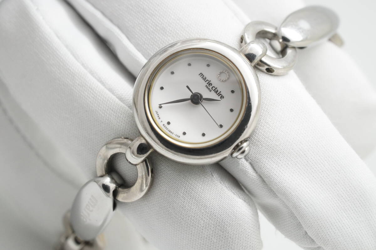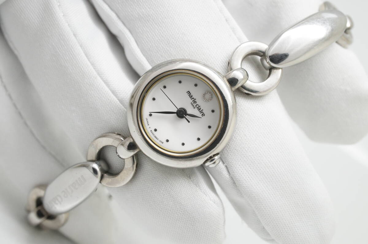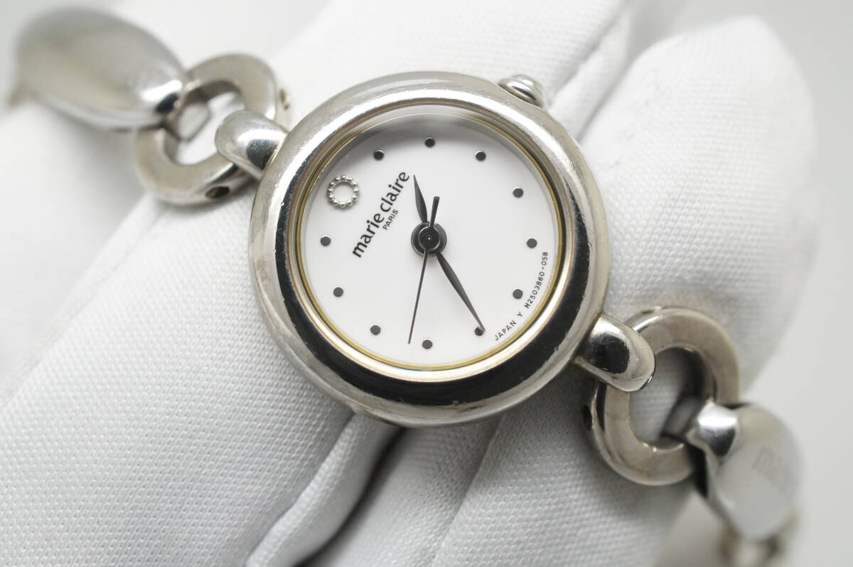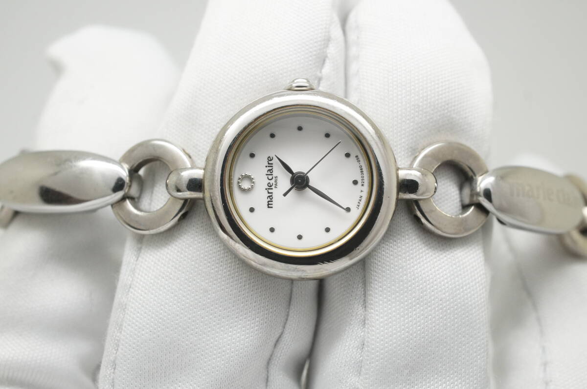 A132●作動良好 marie claire マリクレール ラウンド型 白文字盤 ブレスウォッチ レディース腕時計 シルバー お洒落 クォーツ
