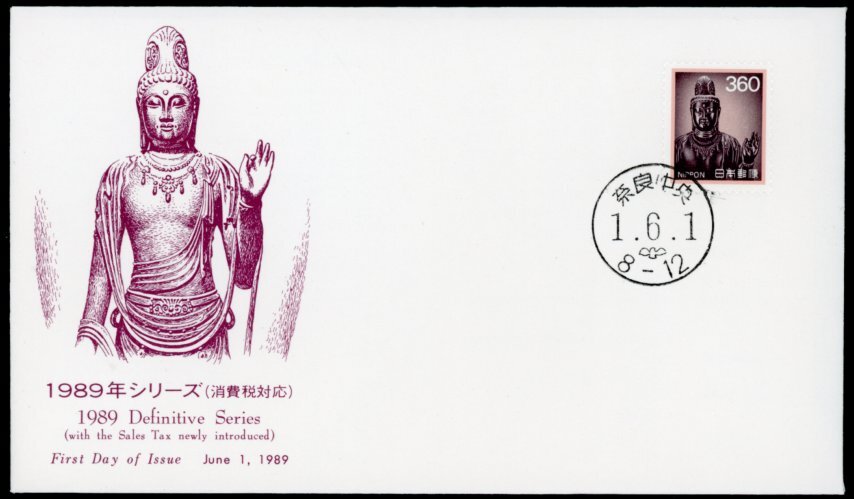 0319 【FDC】新動植物国宝 360円「観音菩薩像」[奈良中央/1.6.1/JPS]