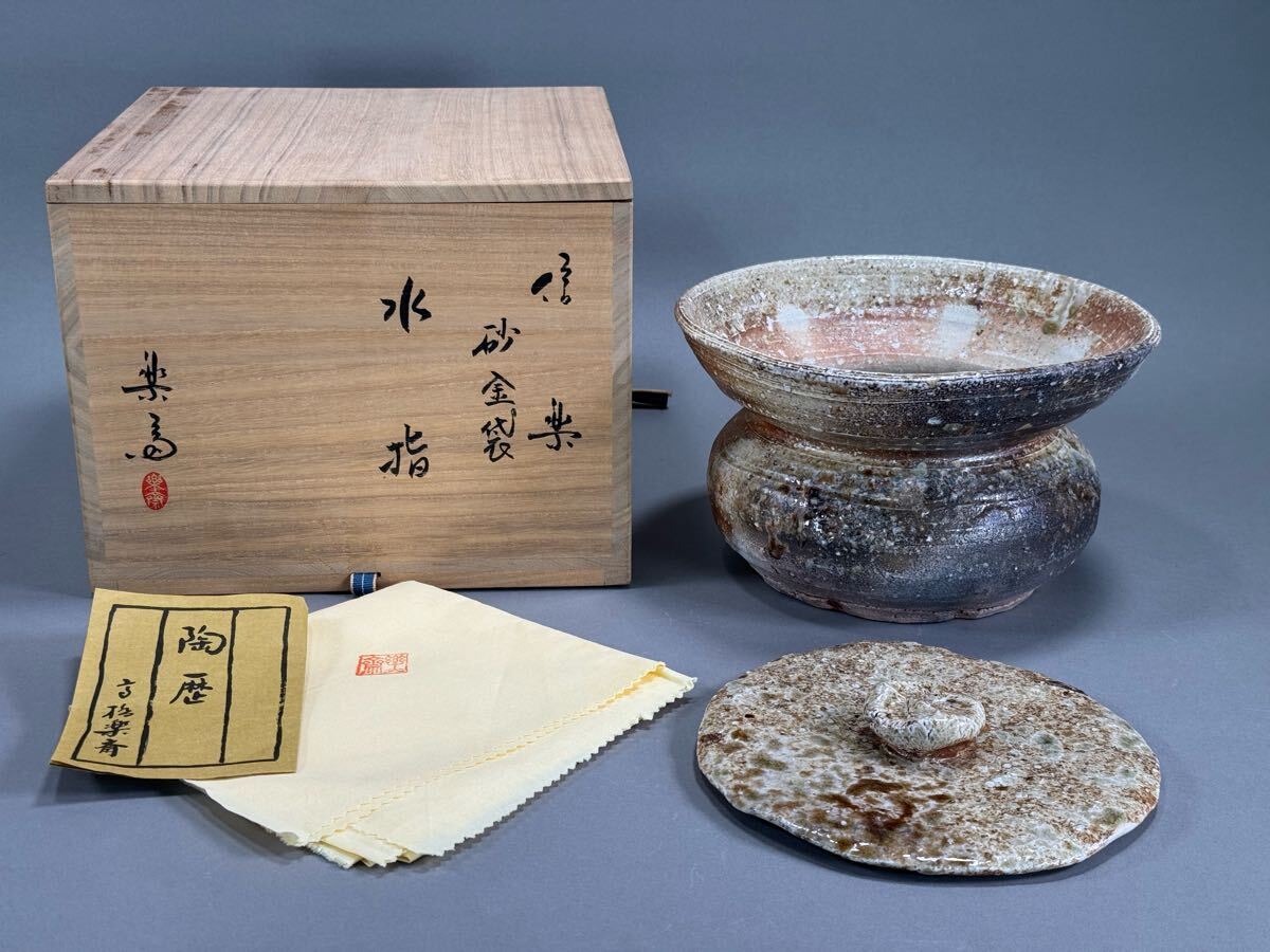 四代 高橋楽斎 信楽 砂金袋水指 共箱 共布 栞 茶道具 本物保 茶器