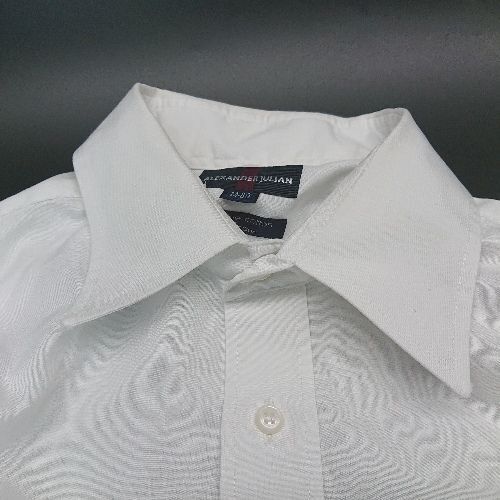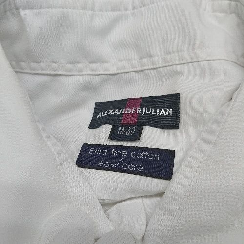 ◇ ALEXANDER JULIAN 胸ポケット コットン100% シンプル フォーマル 爽やか 長袖 ワイシャツ サイズM80 ホワイト メンズ E