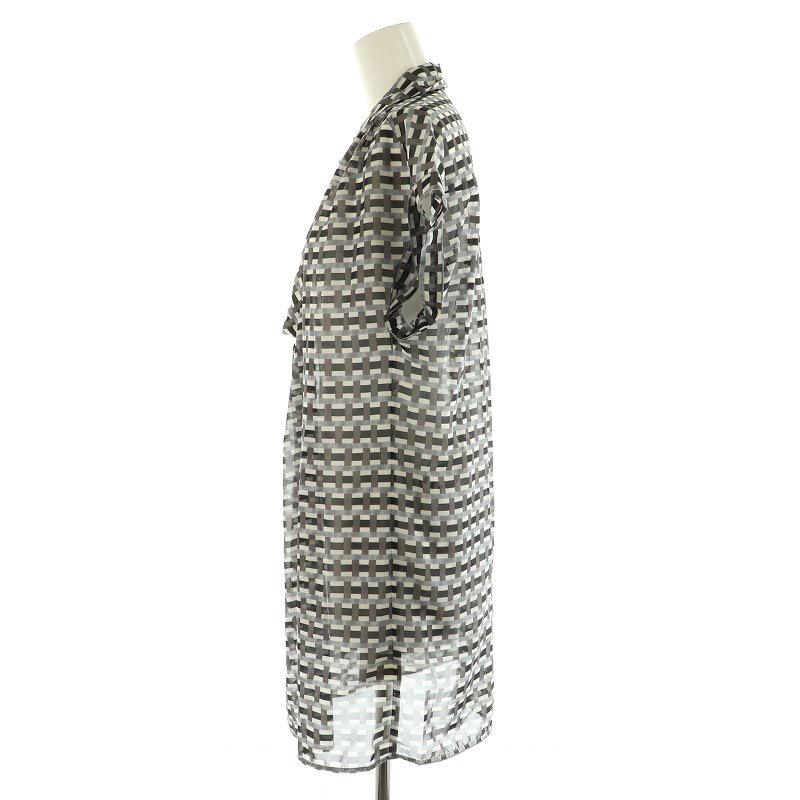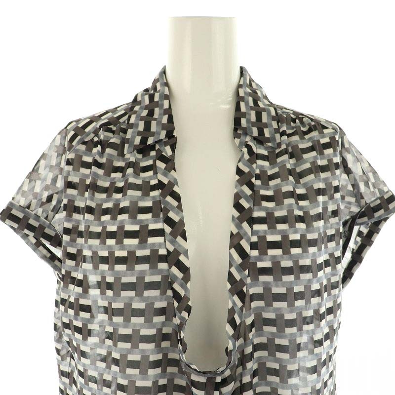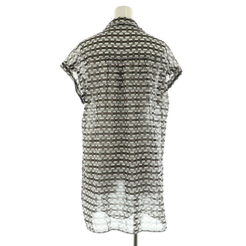 インディヴィ INDIVI 格子柄半袖ブラウス プルオーバー Uネック シアー 38 グレー /MY ■OS レディース