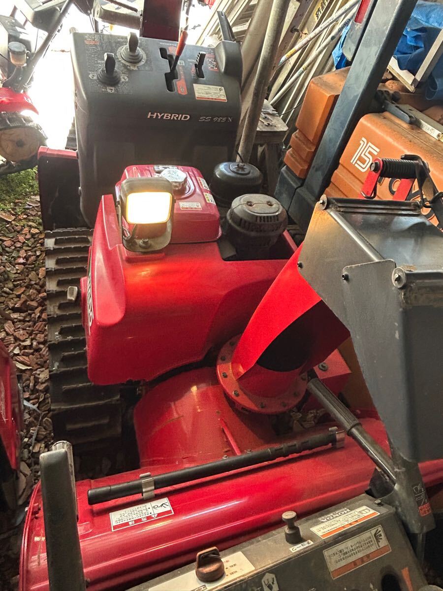 ワード除雪機ハイブリッドSS985NホンダHSM980iと同機種!バッテリー走行機能付き!使用頻度少ないです!オーガの純正山非常に良好!クローラー2本とも非常に良好!長期間使用していない機械と見られます!外観の色褪せや錆など有りますが中古機械としては非常に希少な程度良い機械と思われます。普通の家庭に必備な機械になります。この機種は車体現地360度旋回出来ます!狭い場所などの除雪作業は楽々ですます!女性様も簡単に操作出来る機械になりますのでご興味がありましたらこの是非ご検討よろしくお願い致します。現車確認や試運転など大歓迎ですが土日曜日のみ対応致します。お休みの日でご都合が良い時是非現場に楽しく試運転して見てください。直接お引き取り大歓迎ですがお引き取り困難な方はご自宅玄関まで有料配送も対応可能です。ご必要でしたら是非ご相談ください。中古機械になりますがノークレーム、ノーリターンでお願い致します。