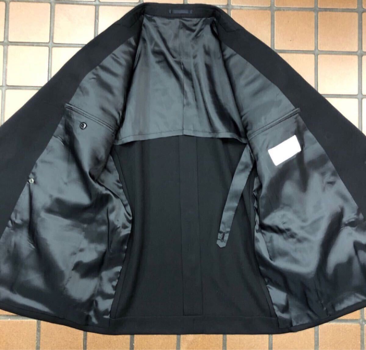 希少な6つボタンブラックフォーマルです。長時間着用する事が多いフォーマルスーツにはストレスの無い一体感を感じる着心地が必要となります。是非ともこの機会にご体験くださいませ。