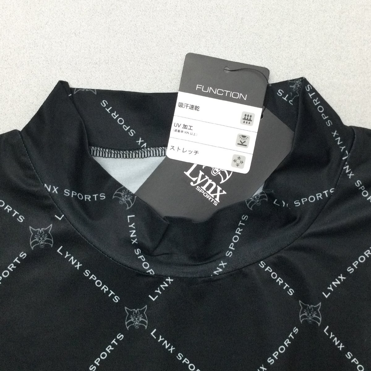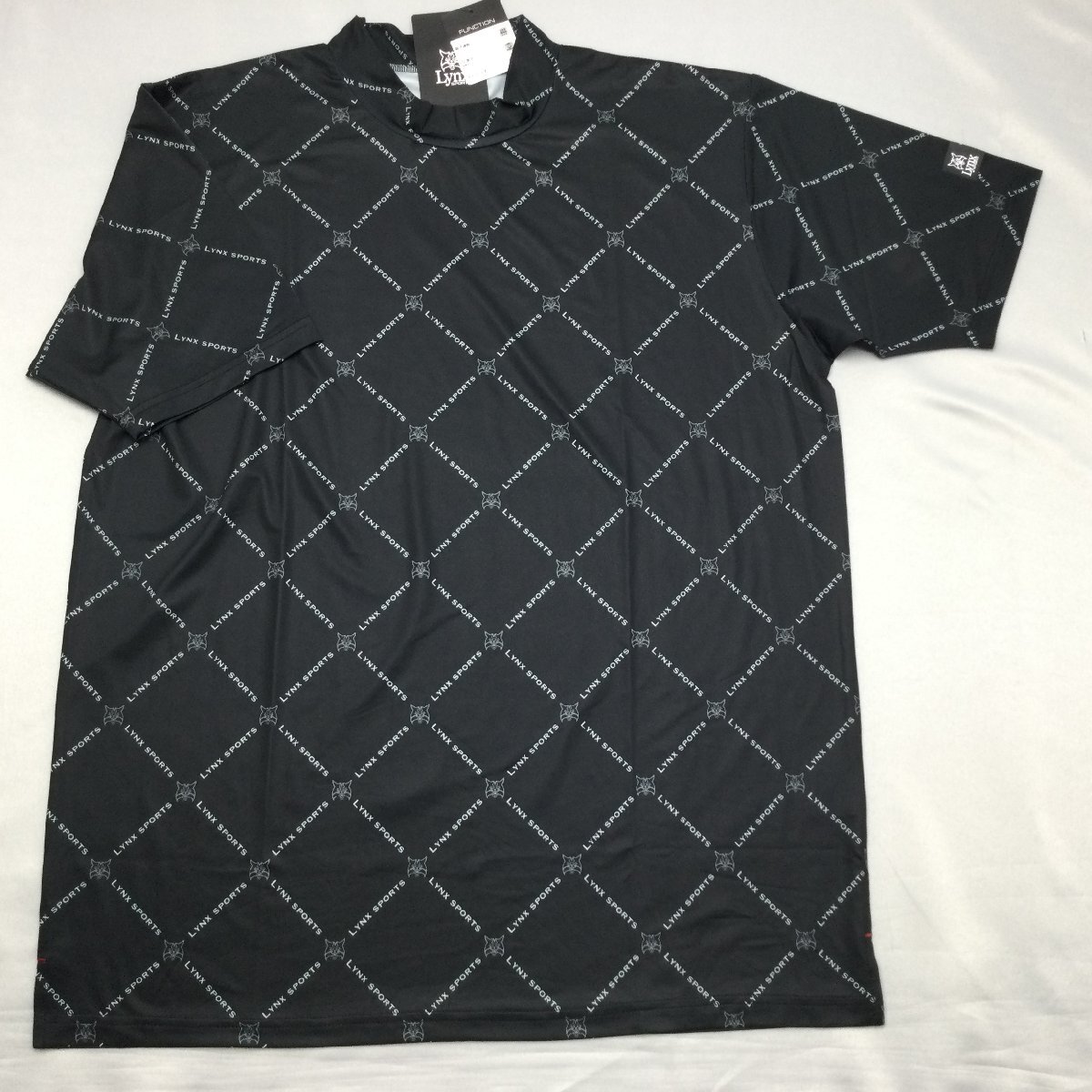 【送料無料】【新品】Lynx メンズ半袖Tシャツ(ストレッチ素材 ハイネック 吸汗速乾 UVカット)  S   ブラック★32205