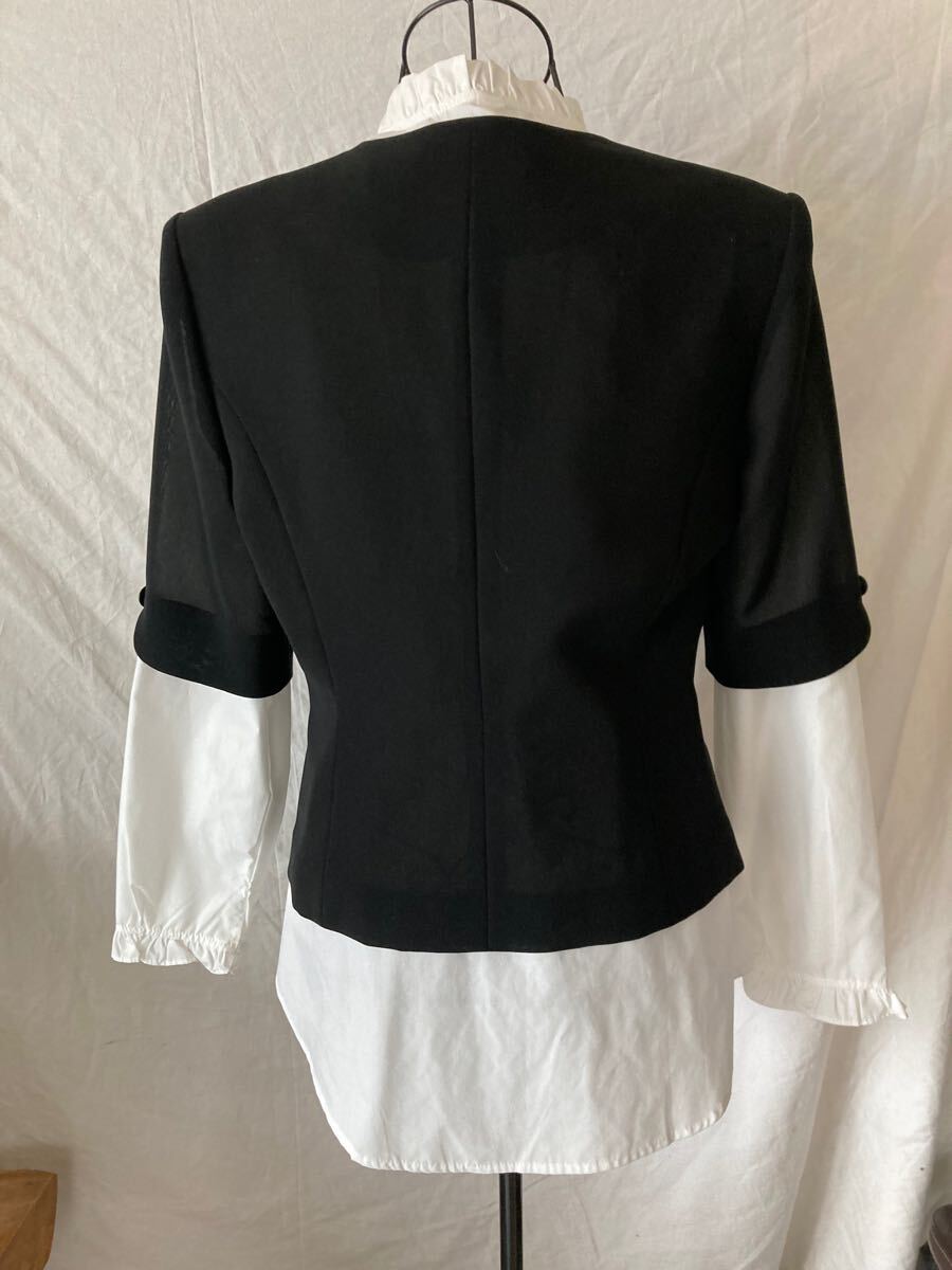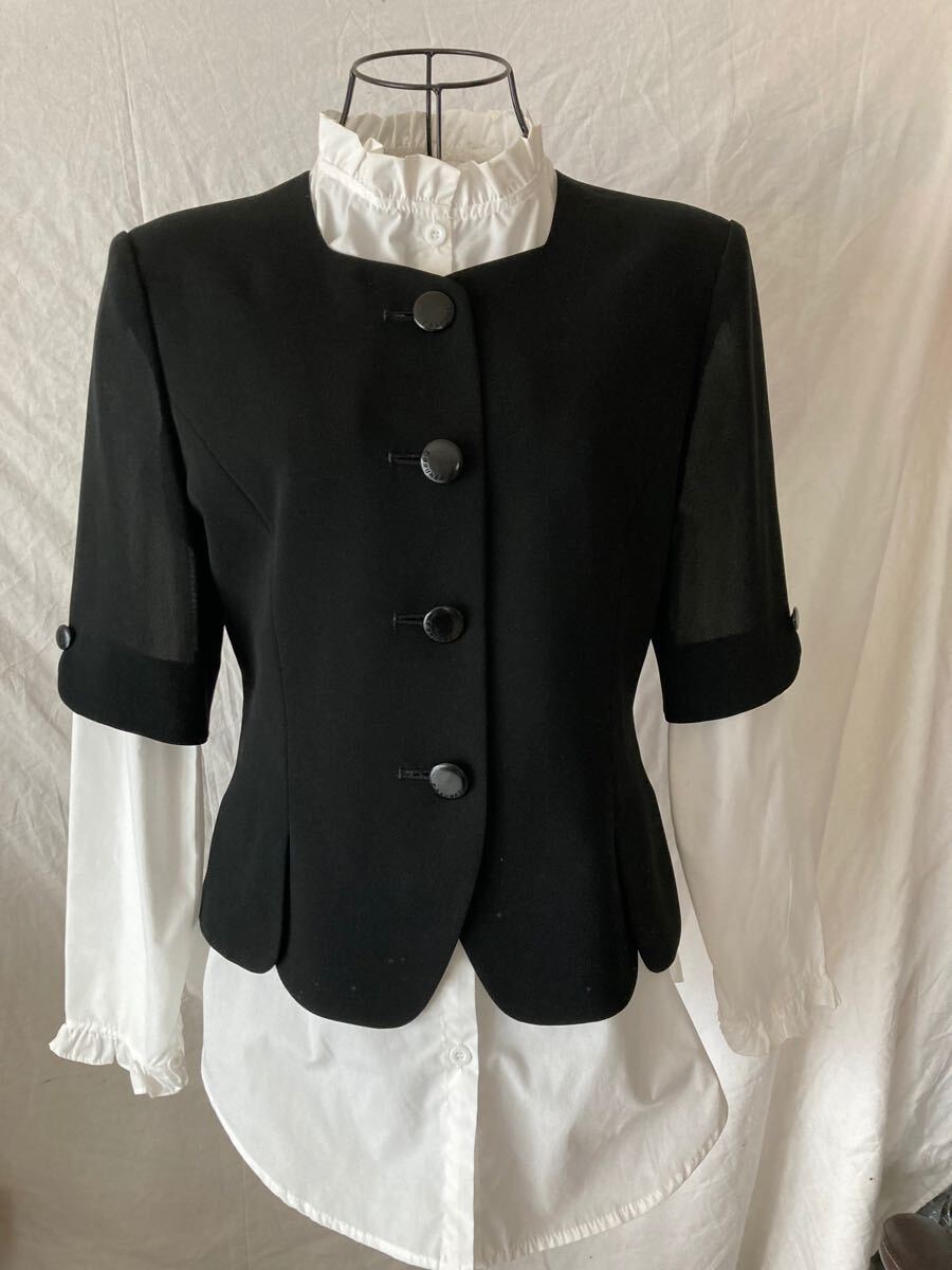 Mireille by ETIENNE BRUNELブラウス ショートスリーブのブラックジャケット&DouxBelle白いシャツ付き カジュアルフォーマルに最適。