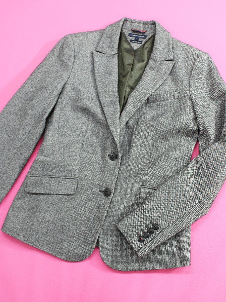 並行輸入品美品 トミーヒルフィガー コットンウールヘリンボーン柄長袖ジャケット 灰8 rk425