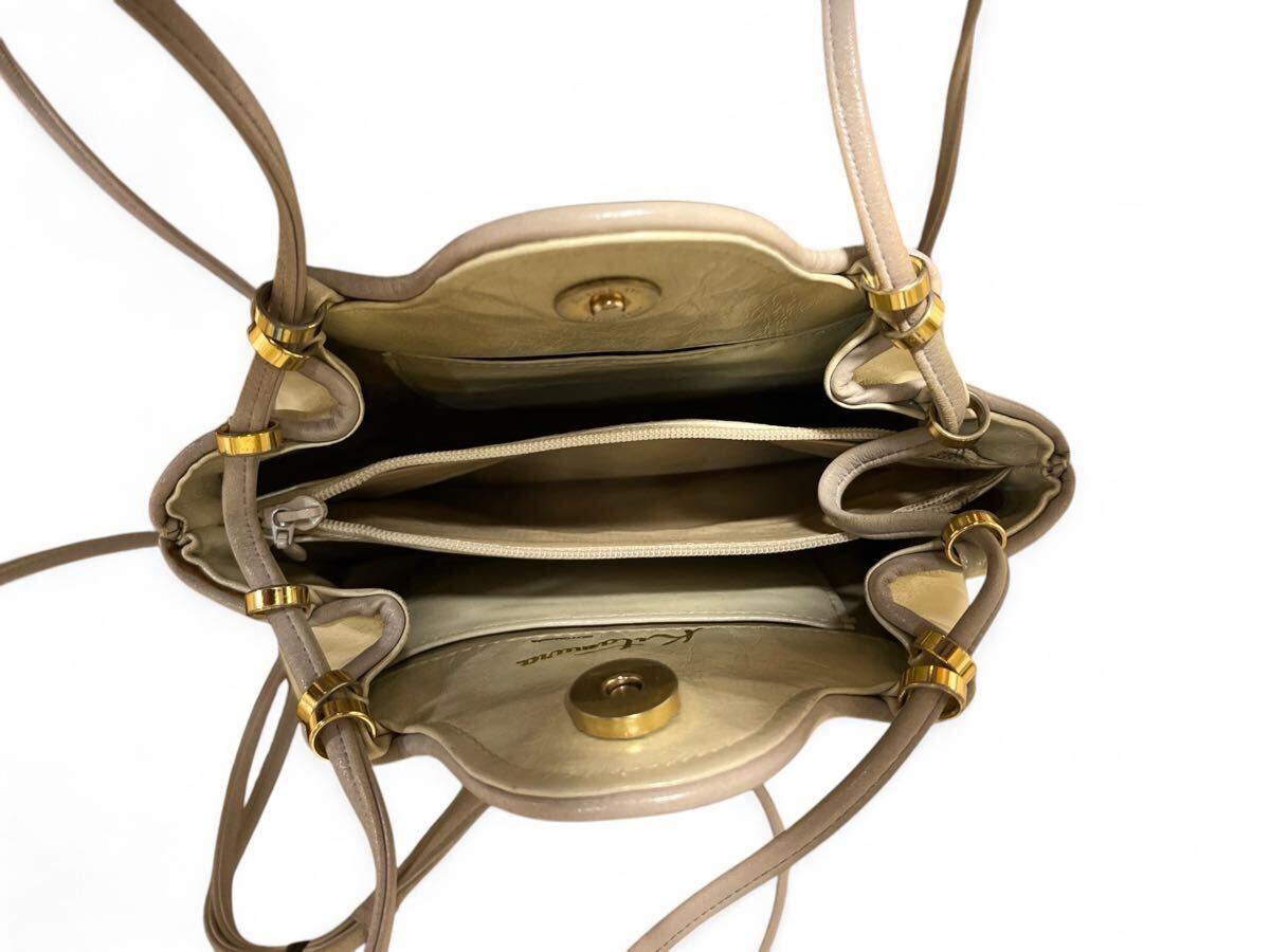 Kitamura キタムラ ショルダーバッグ オフホワイト 肩掛けかばん 肩掛け レザー 大人 上品 バッグ かばん スモール コンパクト 古着/142