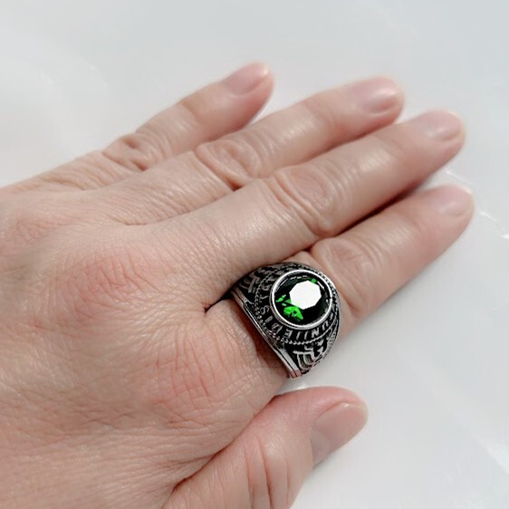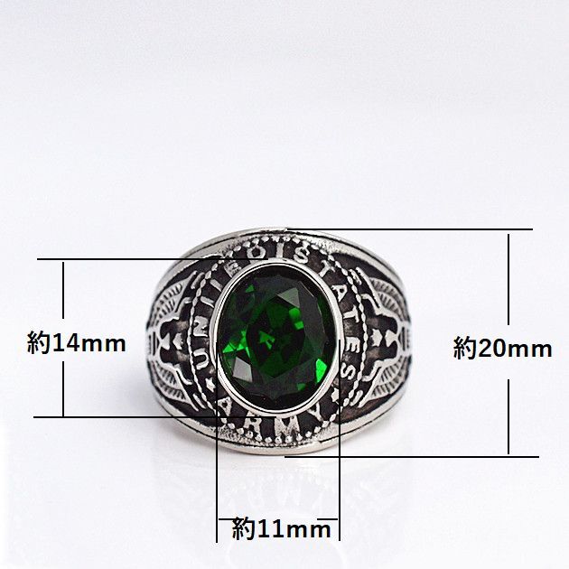 ●金属素材:ステンレス。●カラー :シルバー、一部塗装仕上げ。●ストーン素材: キュービックジルコニア。●サイズ:13号(直径17.0mm)。●重さ:19g。