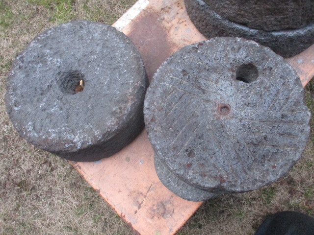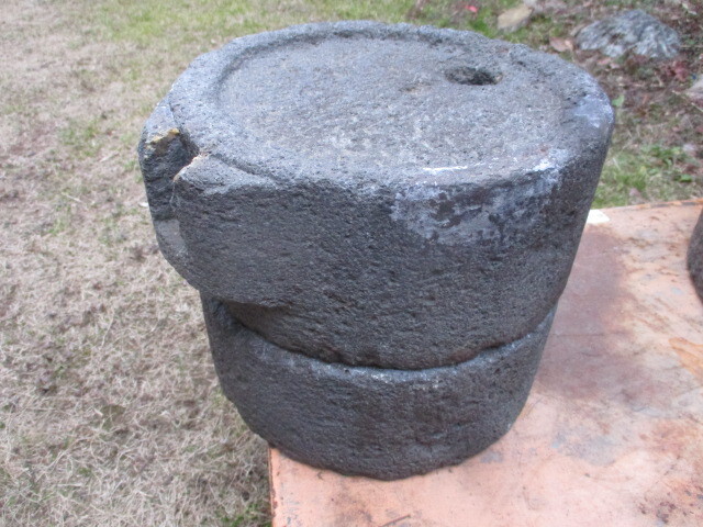 【古民具/古道具/製粉用碾臼/挽き臼/引き臼/石臼】茶臼 和庭園庭 石跳 石飛び 石造園 ガーデニングオ ブジェ 置石