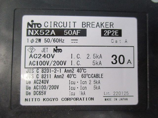サーキットブレーカ2P2E30A(不足部品有)(キズ・汚れ有) 日東工業 NX52A