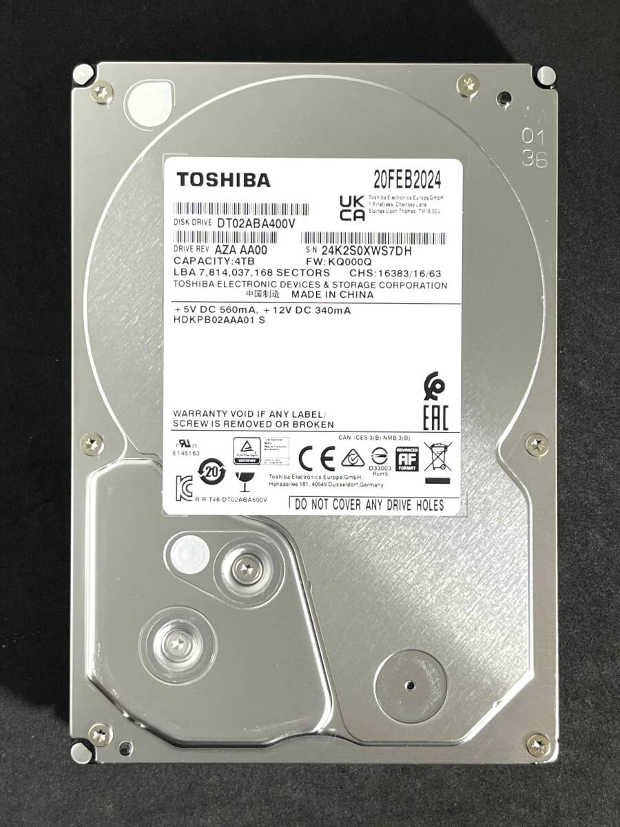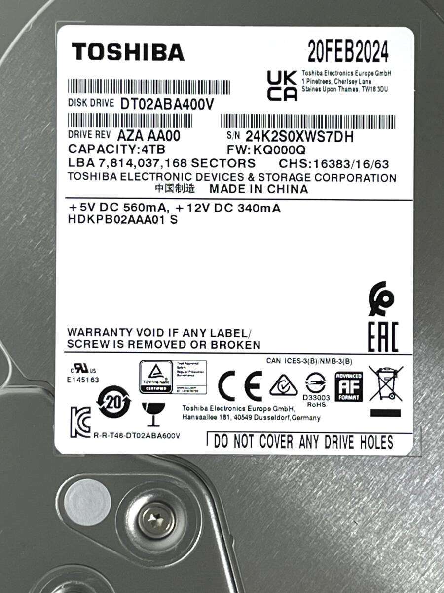 ★ 4TB ★【使用時間:10h】 TOSHIBA / DT02ABA400V 2024年製 新品同様 AVコマンド対応 3.5インチHDD SATA [管理■S0XW]