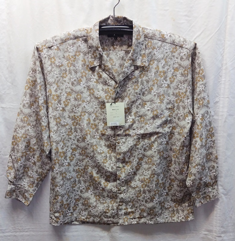 GROSBECの長袖シャツです83-3037新品 L寸 1色 日本製ポリエステル:100%L寸表示の平置き実寸です。着丈:73cm 胸幅:58cm 袖丈:56cm 肩幅:52cmGROSBECの花柄のポリエステルシャツです。左胸にポケットが付いています。日本製です定価¥9790です水曜日は定休日ですので、連絡、発送等の取引業務は 出来ませんのでよろしくお願い致します。 定休日以外連絡可能な時間は、11時~18時迄です。