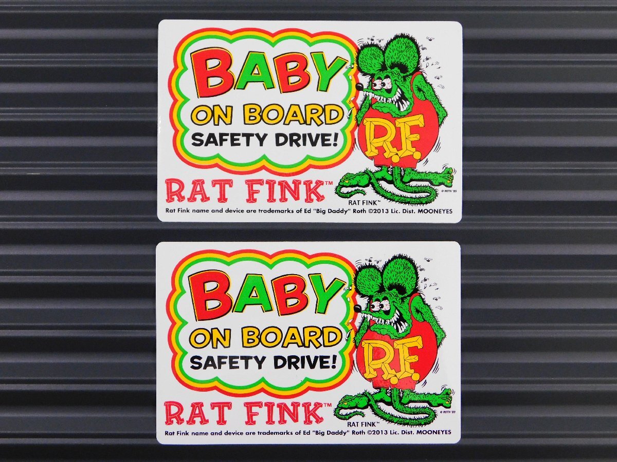 ◆送料\110◆【Rat Fink・ラットフィンク】※《BABY ON BOARD・ベイビーオンボードステッカー / 2枚セット》 RDF044 ムーンアイズ