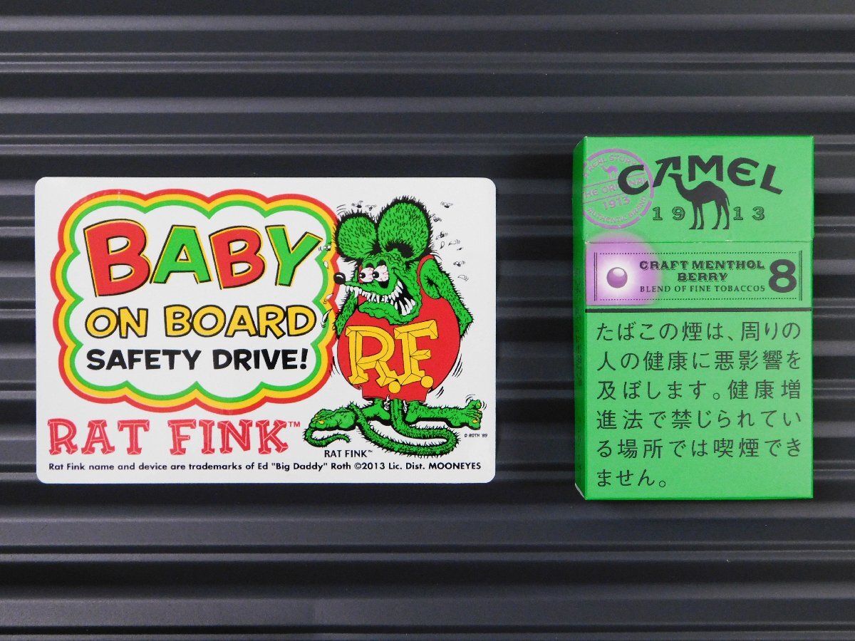 車に赤ちゃんが乗っている事を知らせる、Rat Finkの「BABY ON BOARD」ステッカーです。