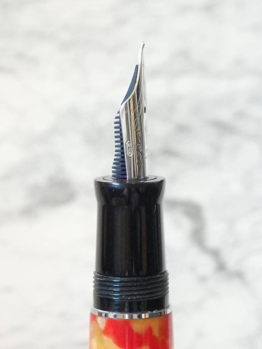 ペン先は、高級万年筆に採用される18K750ソリッドゴールドFニブが奢られています。