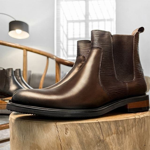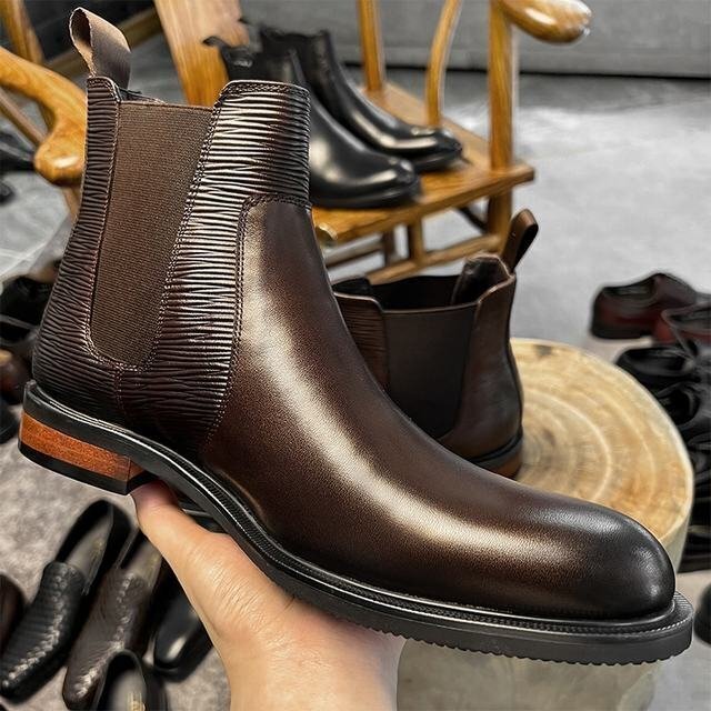 サイドゴアブーツ ブーツ メンズシューズ チェルシーブーツ 牛革 ビジネスシューズ 本革 革靴 フォーマル 紳士靴 ブラウン 24.5cm
