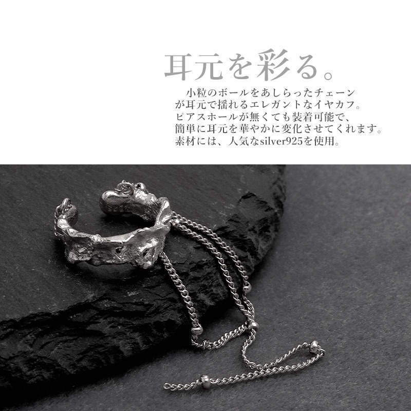 小粒のボールをあしらったチェーンが耳元で揺れるエレガントなイヤカフ。