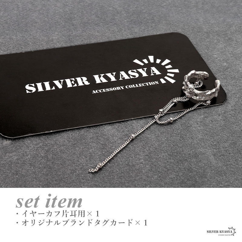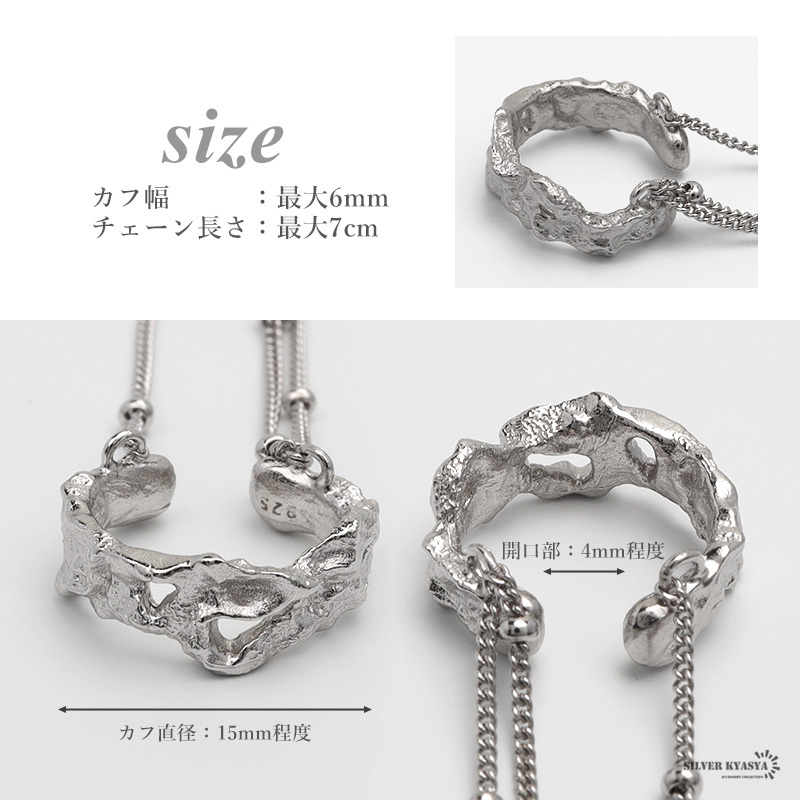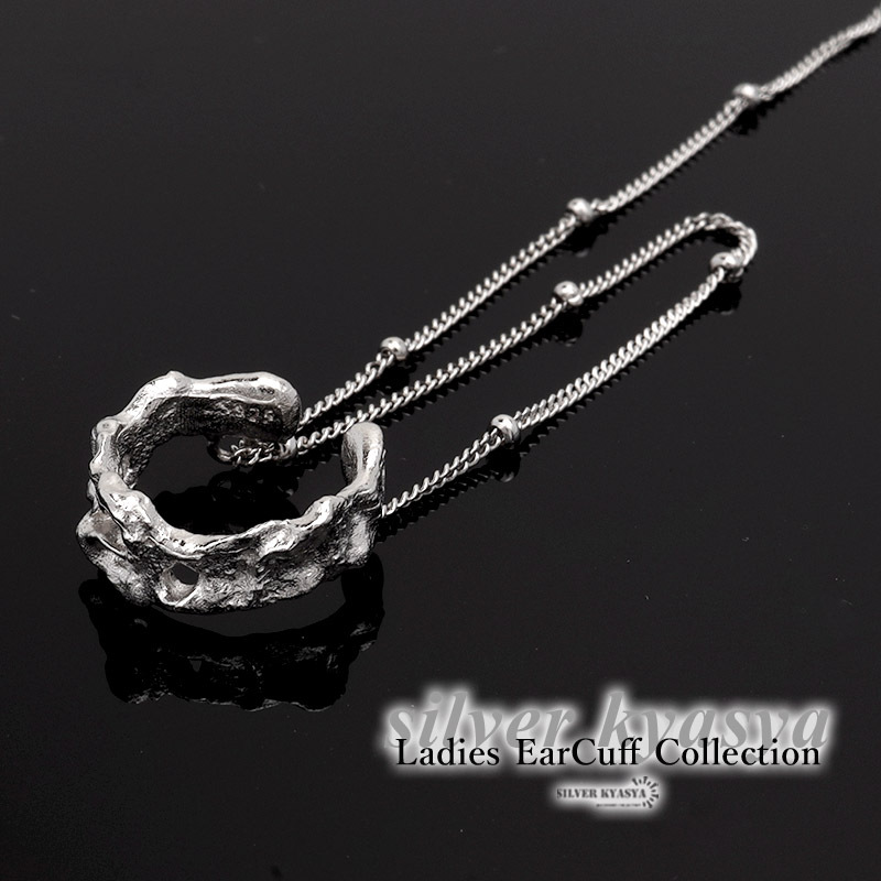 イヤーカフ チェーンイヤーカフ 金属アレルギー シルバー925 チェーン 槌目 歪み 変形 揺れる 透かし イヤークリップ 片耳用