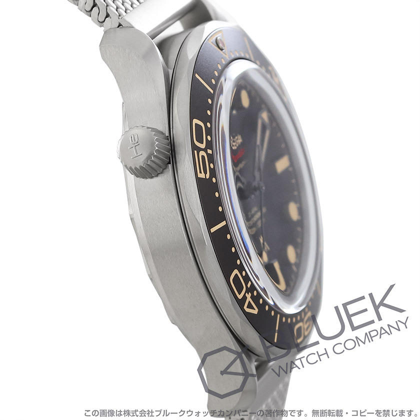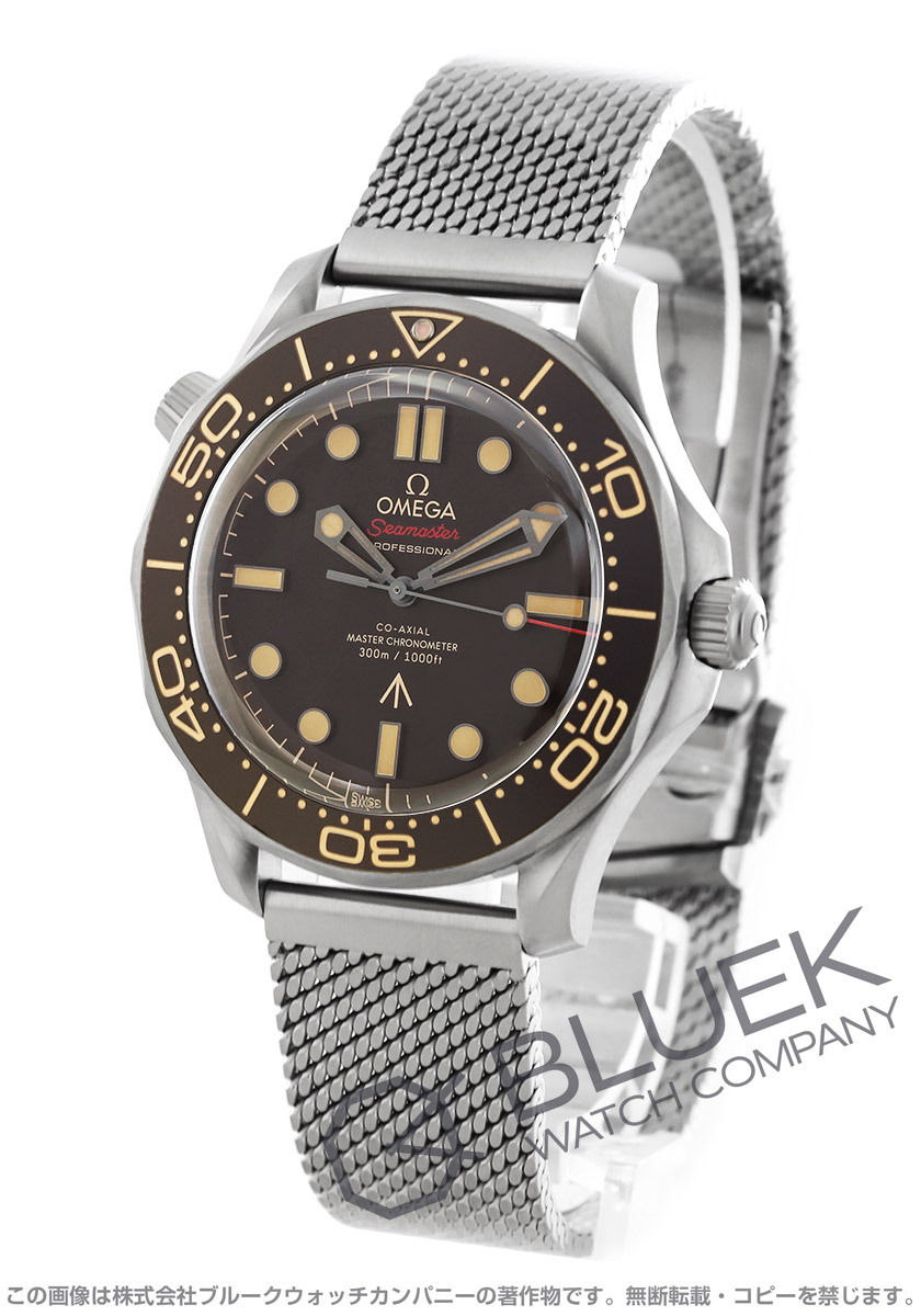 | 1993年に発売された「ダイバー300M」の映画007限定モデル“007ノー・タイム・トゥ・ダイ”でジェームズ・ボンドが着用した腕時計と全く同じです。防水ケース&メタルメッシュブレスにエスケープバルブやセラミック製逆回転防止ベゼルを備えたタフな作りが特徴的なこのモデルは、プロフェッショナルにも対応する信頼性が高い商品です。ムーブメントは15000ガウスもの高耐磁性能で磁気を寄せつけないMETAS認定マスタークロノメーター・コーアクシャルキャリバー8806(55時間パワーリザーブ)を搭載。中でもダイヤルにトロピカルブラウンのアルミニウム、ケースにはチタンを採用し、インデックスとベゼルスケールにベージュの夜光塗料が塗布されて暗所でも視認性を発揮します。英国海軍中佐役のボンドらしく英国軍官給品の“ブロードアロー”をダイヤル6時とケースバックに配すなど隅々まで特別感のある1本です。 |