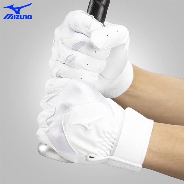 M ミズノ 野球 バッティンググローブ 両手 野球 バッティング手袋 高校野球対応 洗える天然皮革 1EJEH02310 ホワイト 白 手袋 グラブ