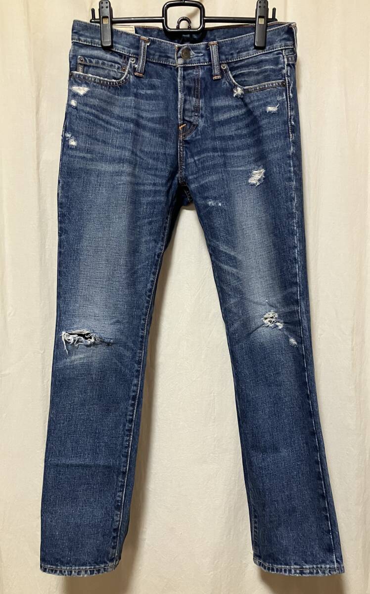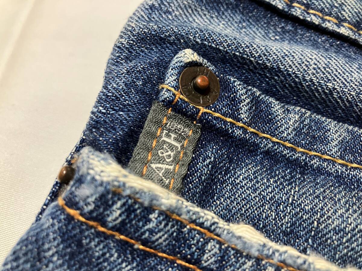 | 色:インディゴブルー 色落ちひげ加工 表現するのが難しい微妙な色です ご了承下さい 素材:コットン100% 中肉です(薄くはありません) サイズ:30 採寸:平らに置いて計測/ウエスト幅40センチ ヒップ53センチ また上25センチ(ボタンフライ) また下77.5センチ わたり28センチ ひざ20センチ すそ19センチ 重さ700グラム ※いずれも最大値の計測になります 測りどころが微妙なのであくまでも参考程度としてお考え下さい クラッシュ加工、ひげ加工、色落ち加工が施されています 比較的しっかり目の素材 中古品です 一時期気に入って着用していました(期間回数等の詳細は不明です 御了承下さい) 衣類特有の着用感あります ※写真参照/裾にスレ感あります 保管に伴うたたみジワ、くせあります 特に目立つような傷汚れ等は見当たりません 今後も履いていただけるパンツです 上記の事及び、中古品をご理解頂ける方宜しくお願い致します |