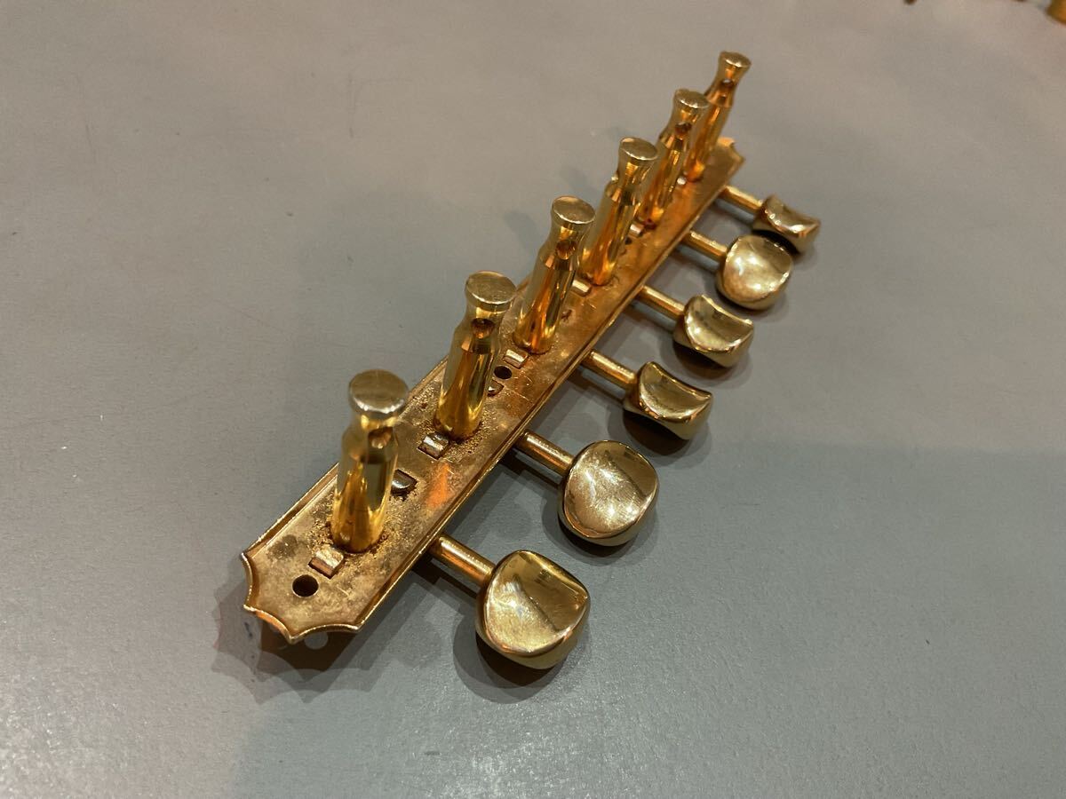 知っている付いているモデルはゴールドだと76年のエクスプローラーですが1弦側になる為更にレフトハンドという奇跡的なモデルのペグです。もしくはファイヤーバードのリバースヘッドなどに もしくはサイズは一緒なので糸巻きを反対にしたい方にも使えるかと思います。