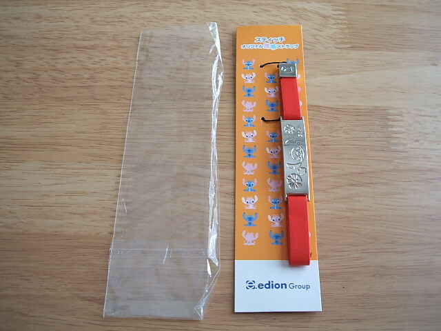 出品に際し、撮影のために開封したのみです。ストラップの裏側には「edion Group」という薄い刻印があります。