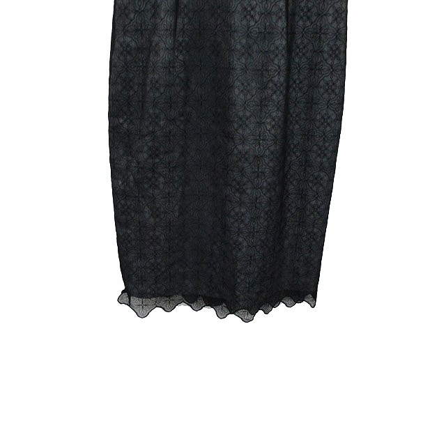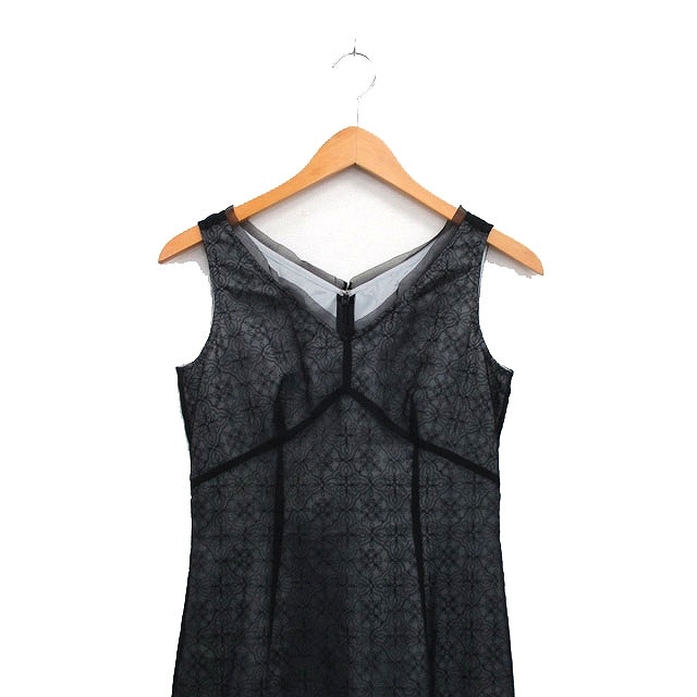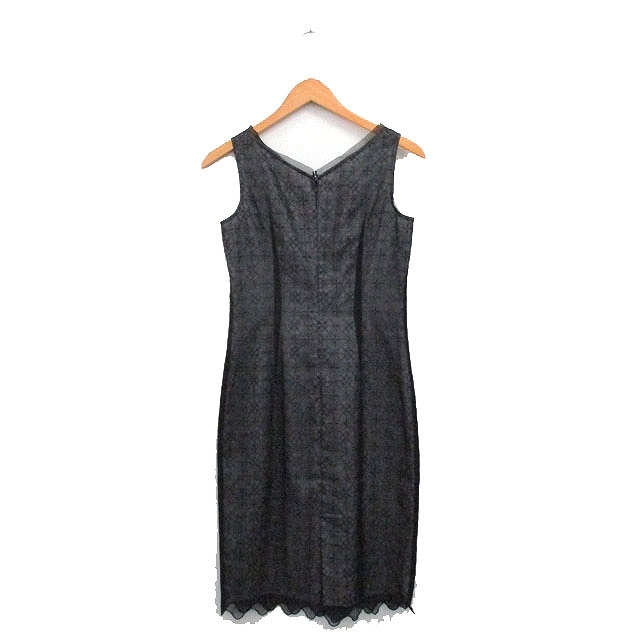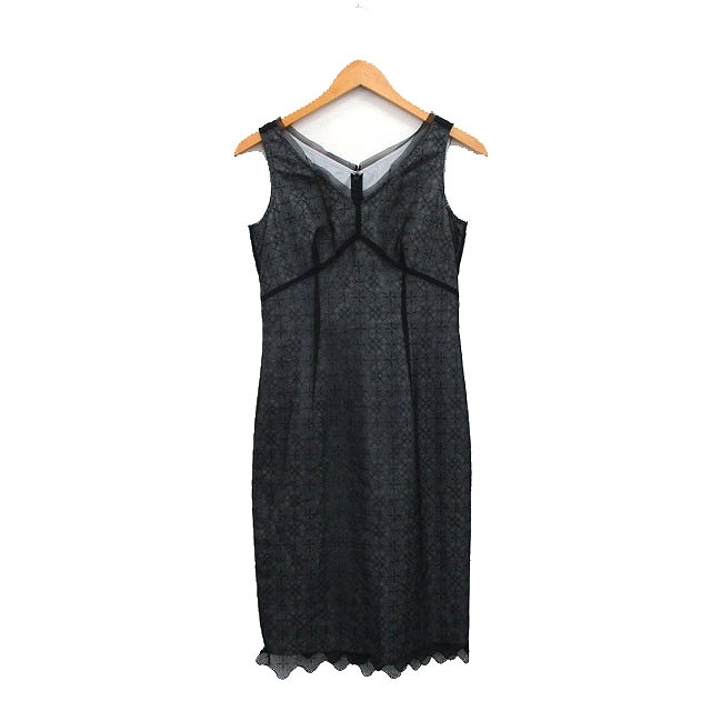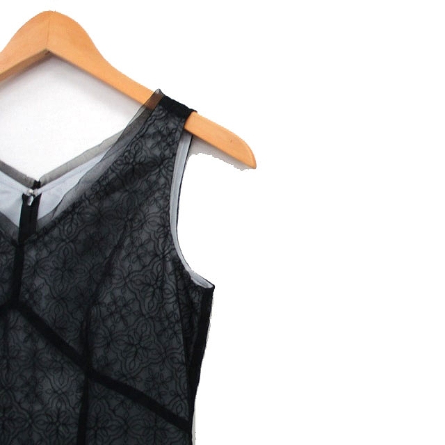 ミッシェルクラン MICHEL KLEIN ワンピース ロング ノースリーブ Vネック 刺繍 38 ブラック 黒 /KT27 レディース