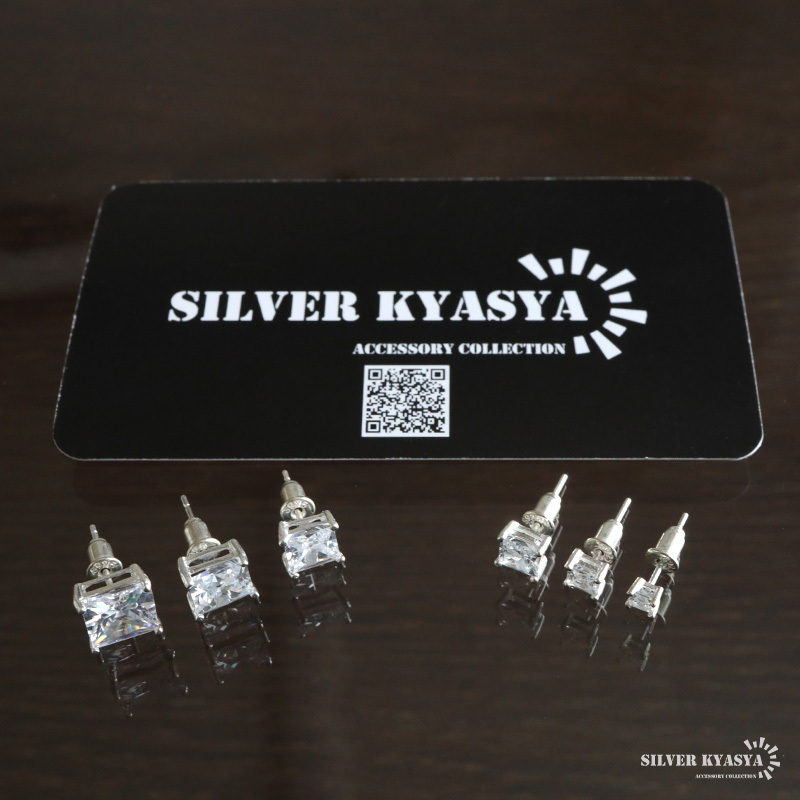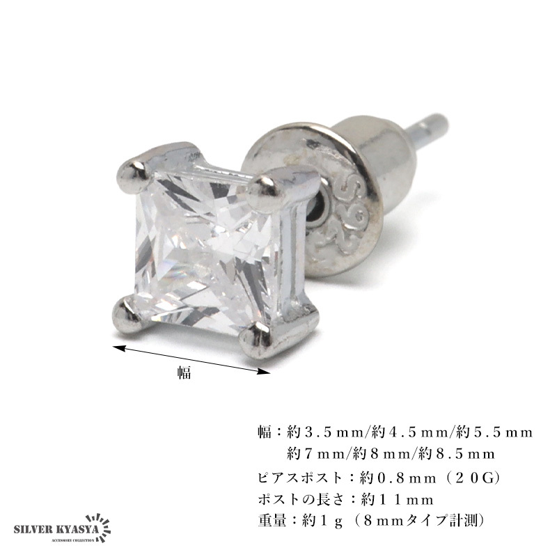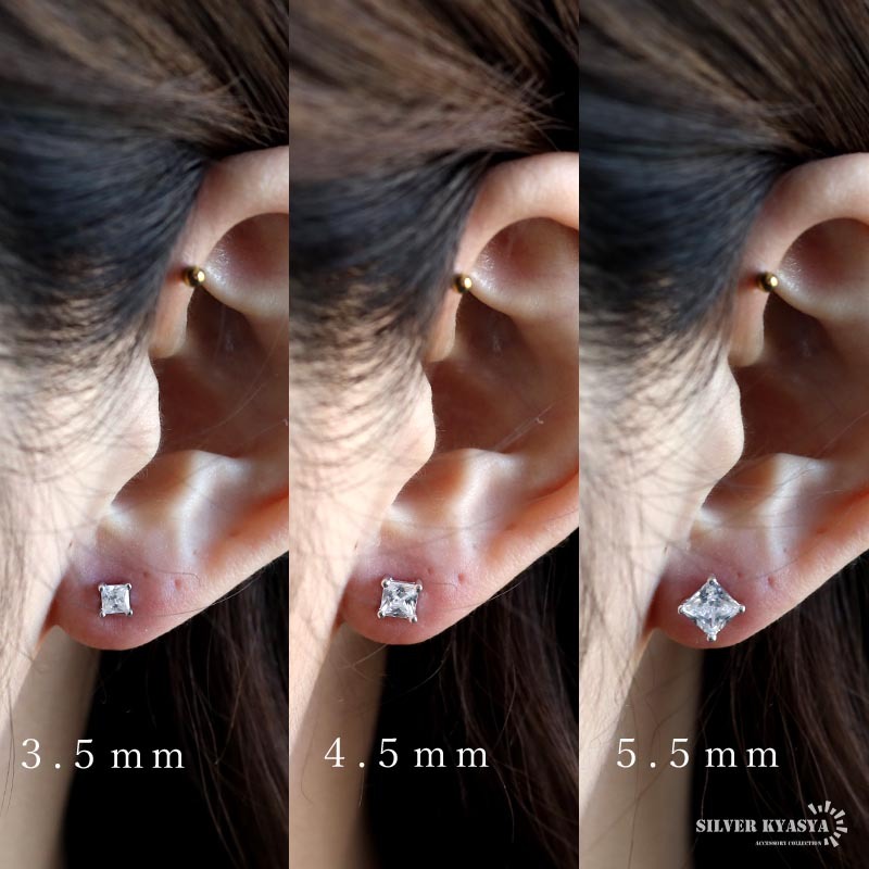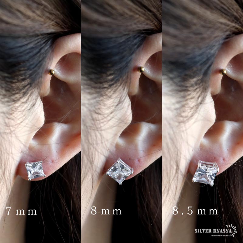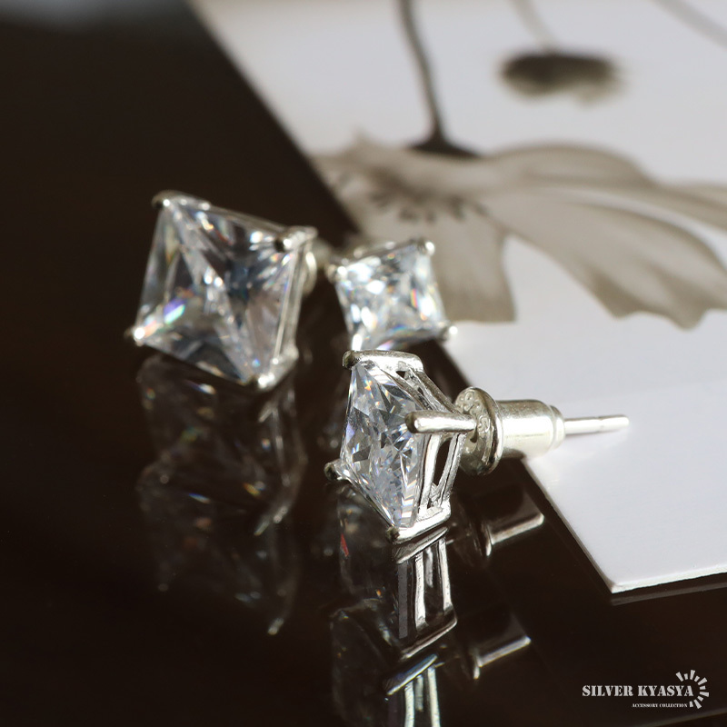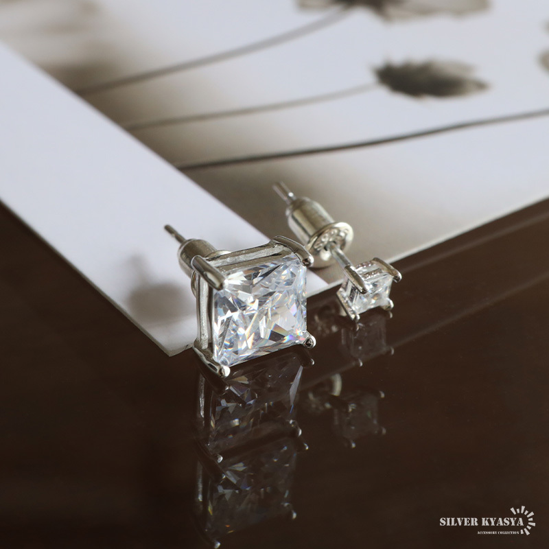 スクエアなストーンをセットしたスタッドピアス。透明感があり、光の反射でキラキラと輝きを放ってくれる逸品。サイズは6タイプからお選びいただけます。
