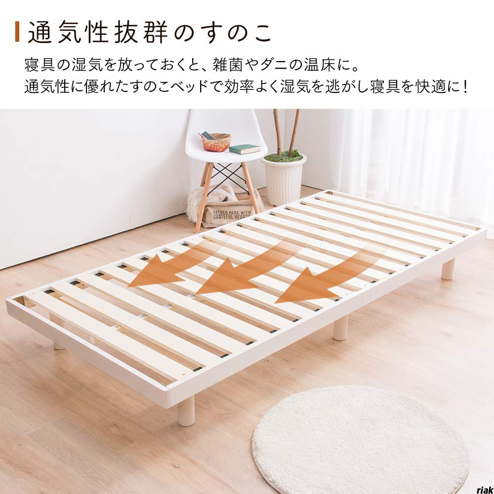 通気性の良いすのこ仕様で、湿気を逃がし、快適な睡眠環境を提供。