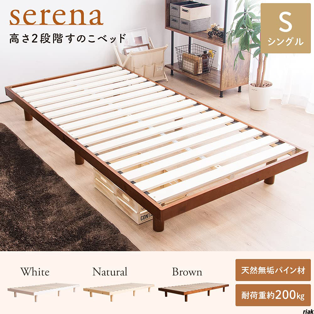 【天然無垢のパイン材使用で、自然な風合いと高い耐久性】 ベッド ベッドフレーム シングル 2段階 天然木 すのこベッド