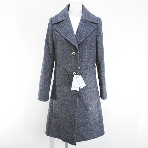 未使用品 ブルマリン Blumarine 4305 ロング丈 チェスターコート 42 紺系 ネイビー イタリア製 ハートポケット 毛 ウール 裏地 タグ付 レディース