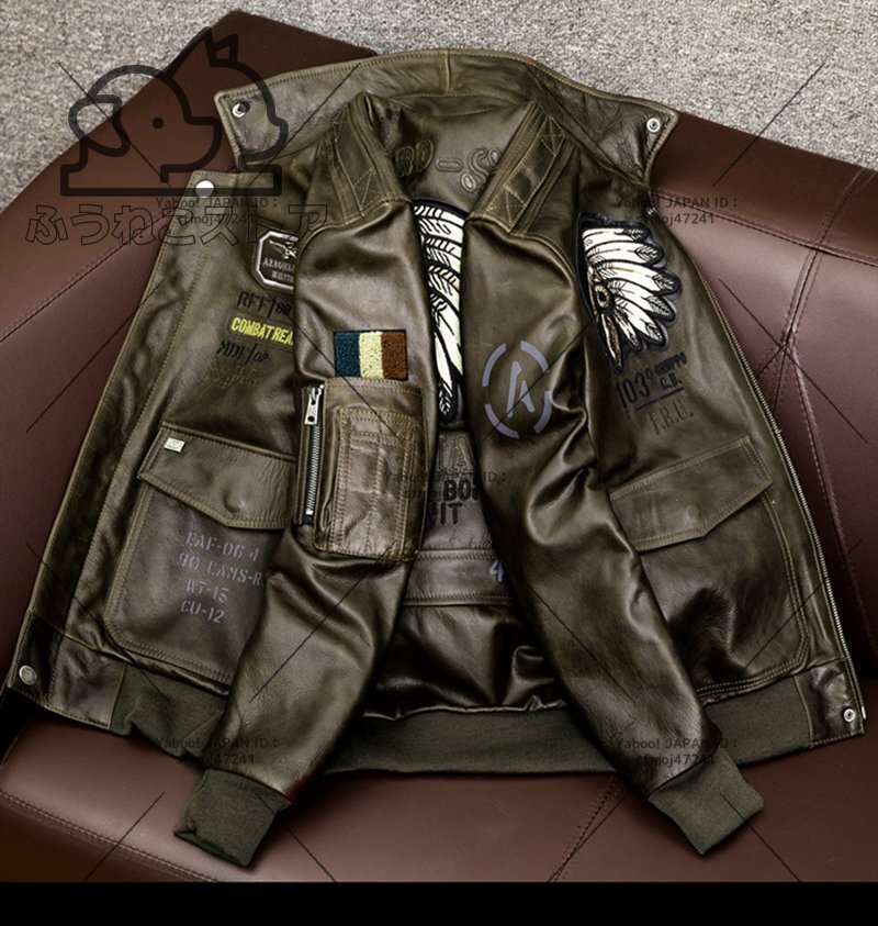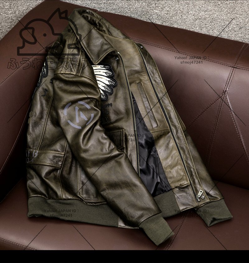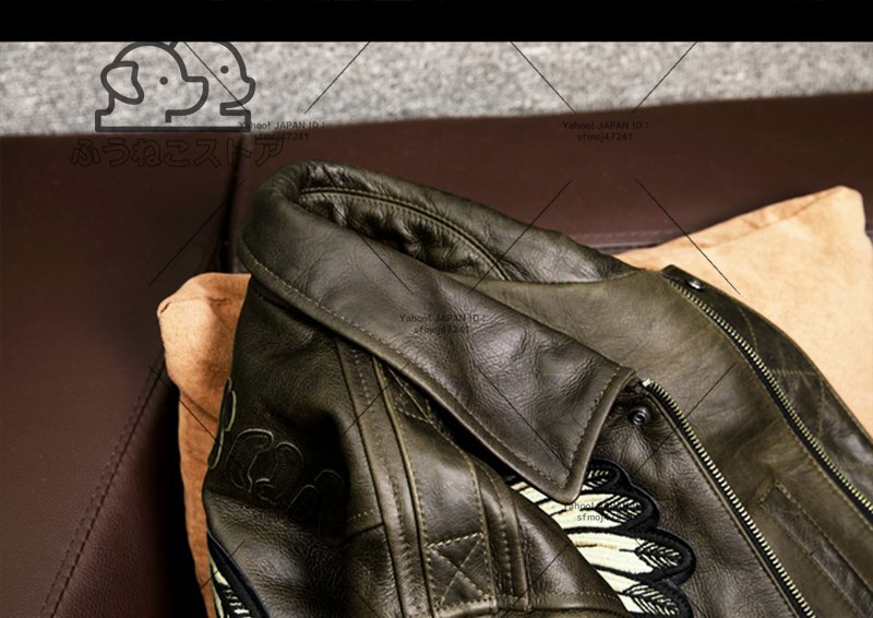 高品質☆ 馬革バイカー服刺繍革ジャケットメンズ本革ジャケットコートS~5XL