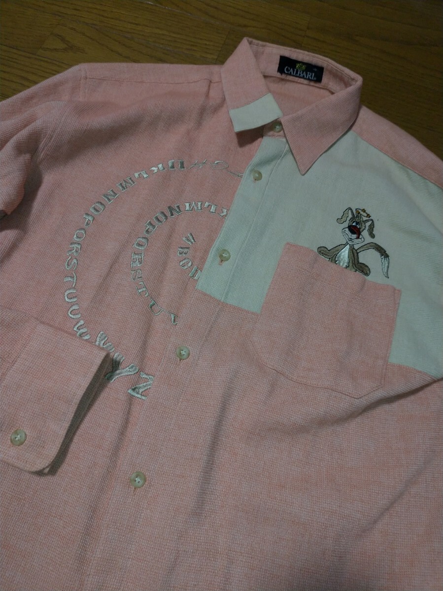 calbari カルバリ 長袖シャツ メンズ サイズM レトロシャツ コットンシャツ ワンちゃん刺繍 昭和 日本製