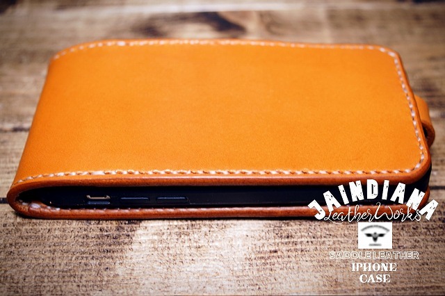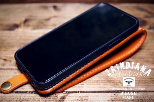iPhone16ケース 手縫い サドルレザー キャメル (iPhone16pro,16proMax,16Plus仕様での製作も可) | ||||