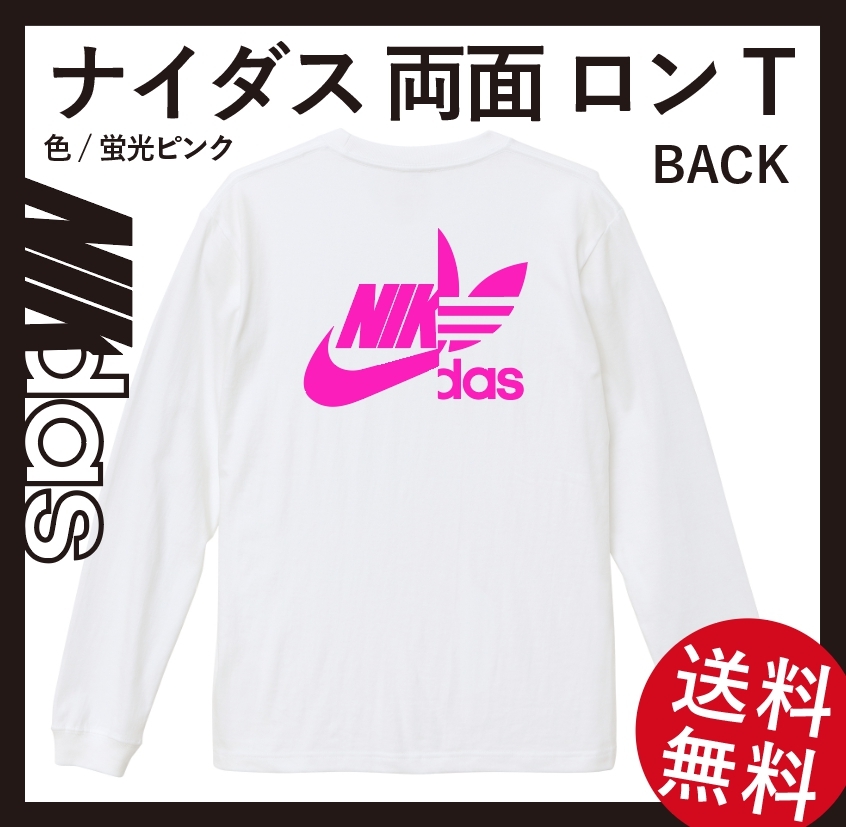 ナイダス ロングスリーブ Tシャツ Lサイズ ホワイト×蛍光ピンク