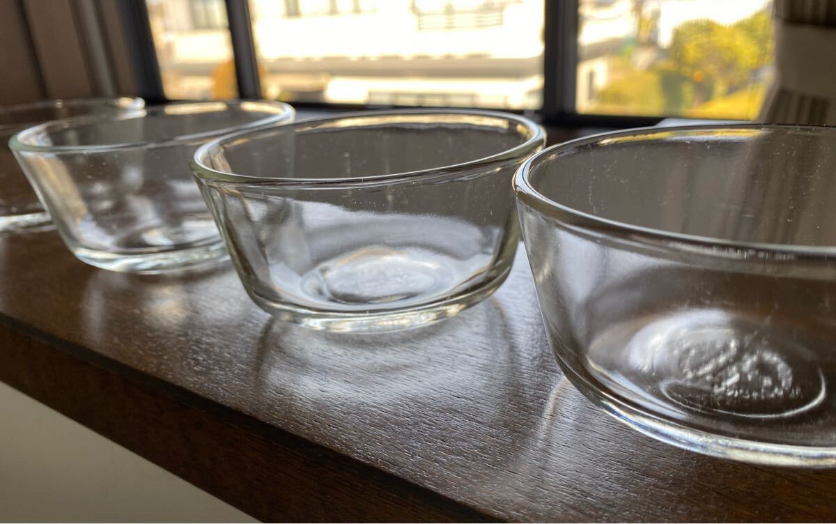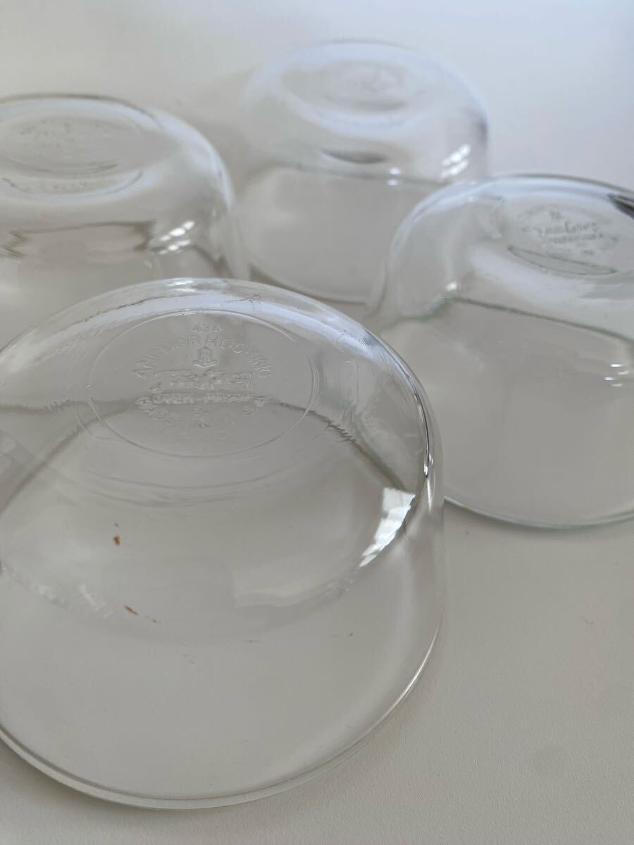 アメリカで購入したファイヤーキングのクリア カスタードカップ 4個セットです。
