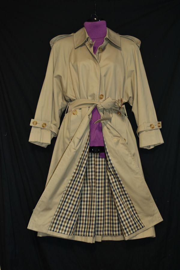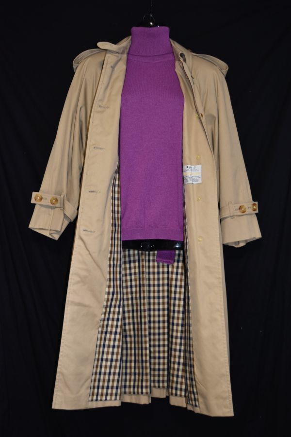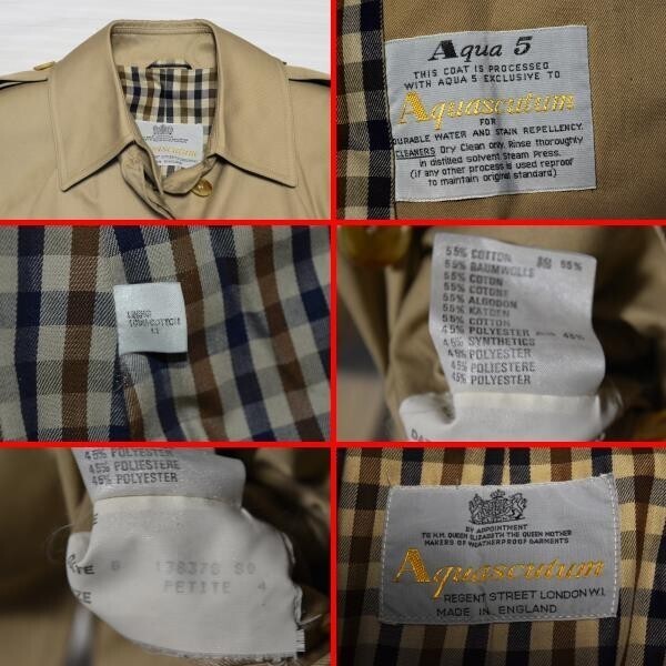★美品★アクアスキュータム★AQUA5★上品なハニーベージュ★お洒落なクラブチェック★ 素敵で恰好いいバルカンシングルトレンチコート4/M