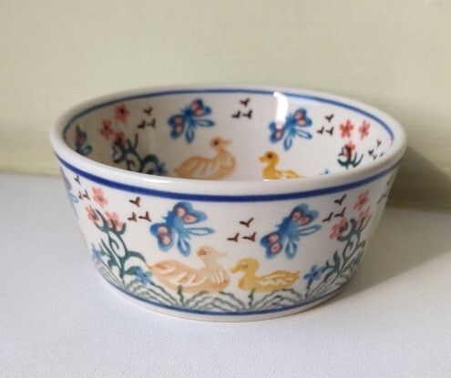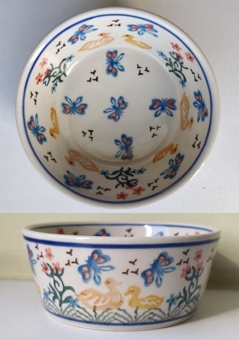 x732 ポーランド陶器 10.5cm小鉢/ボウル アヒル 蝶 花 ポーリッシュポタリー 食器