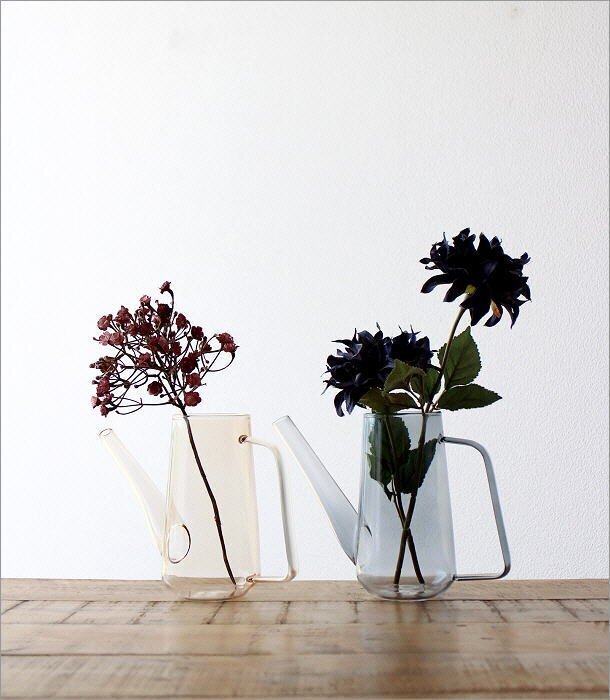 | こちらのページでは【Aカラー】のみの販売です インテリアの雰囲気を壊さない くすみ感のあるクリアガラスの オシャレな水差し 室内の鉢植えに水やりするのに ちょうど良いサイズで 上部の口がふさがっていないので フラワーベースとしても使えます クリアガラスの透明感が 光や水の美しさまで惹き立ててくれ 茎や枝部分までスタイリングを楽めそうです 商品名 : ガラスの水差し&ベース 商品番号 : ksh6680 全体のサイズ(cm) : 幅21×奥行7.5×高さ14.5 内サイズ(cm) : 口径5 内容量(満水) : 450cc 材質 : ガラス 重量 : 180g 生産国 : 中国 ※ガラスの気泡や歪み、小傷等はご容赦ください ※手作り品の為、ハンドルの付け位置の傾きはご容赦ください ※ディスプレイによる色の違いはご了承下さい |