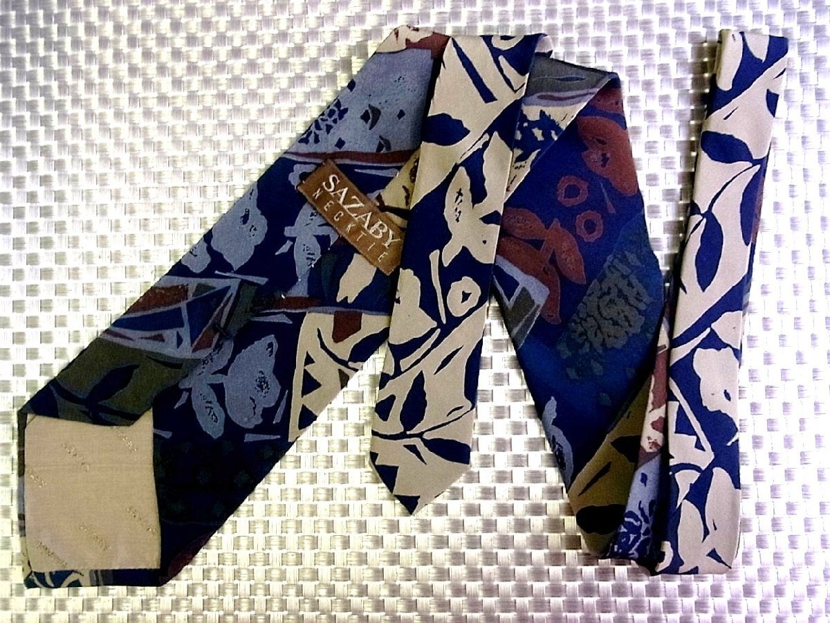 ♪36833D♪状態並品【花 葉っぱ 植物 柄】サザビー【SAZABY】ネクタイ